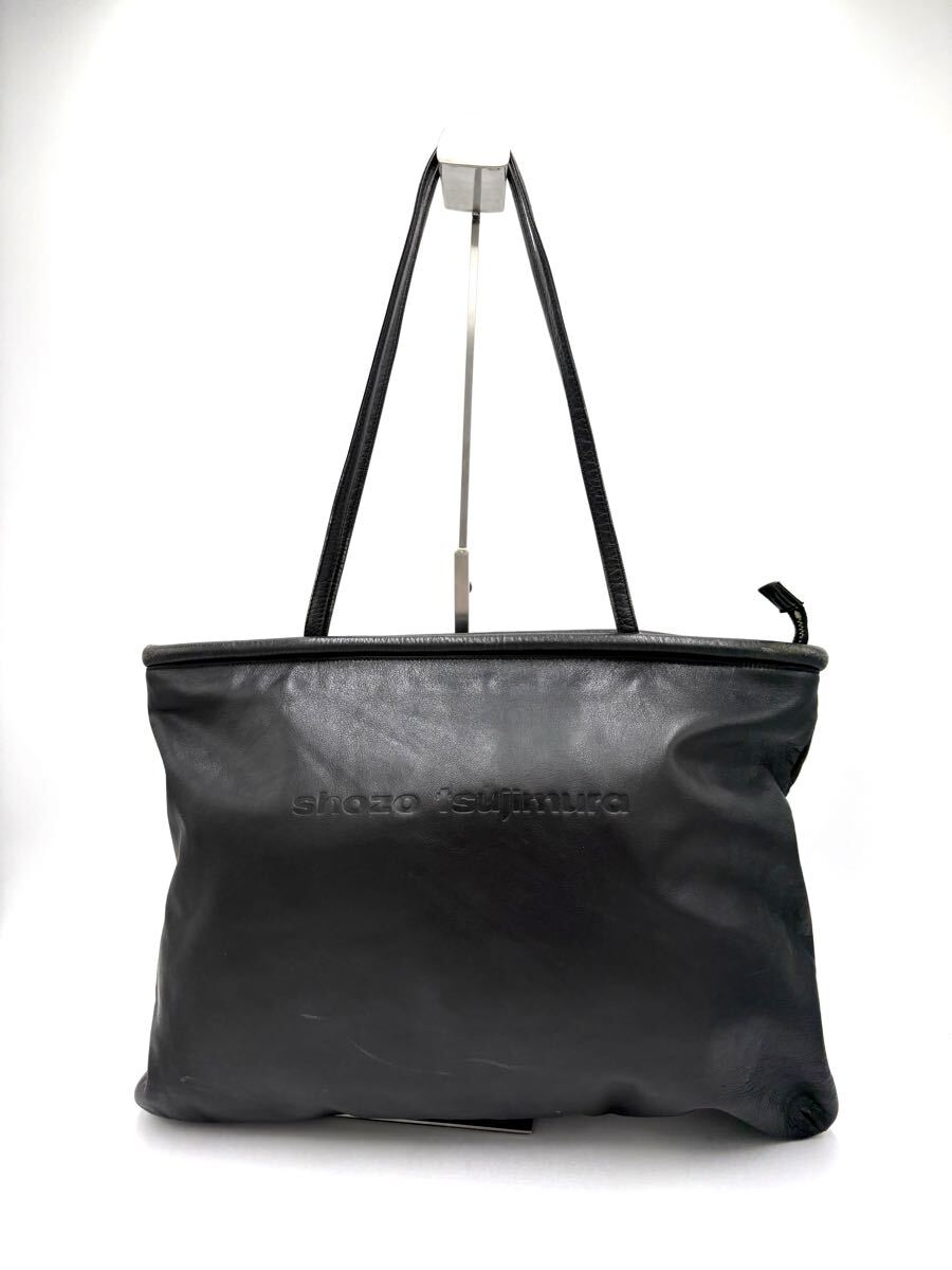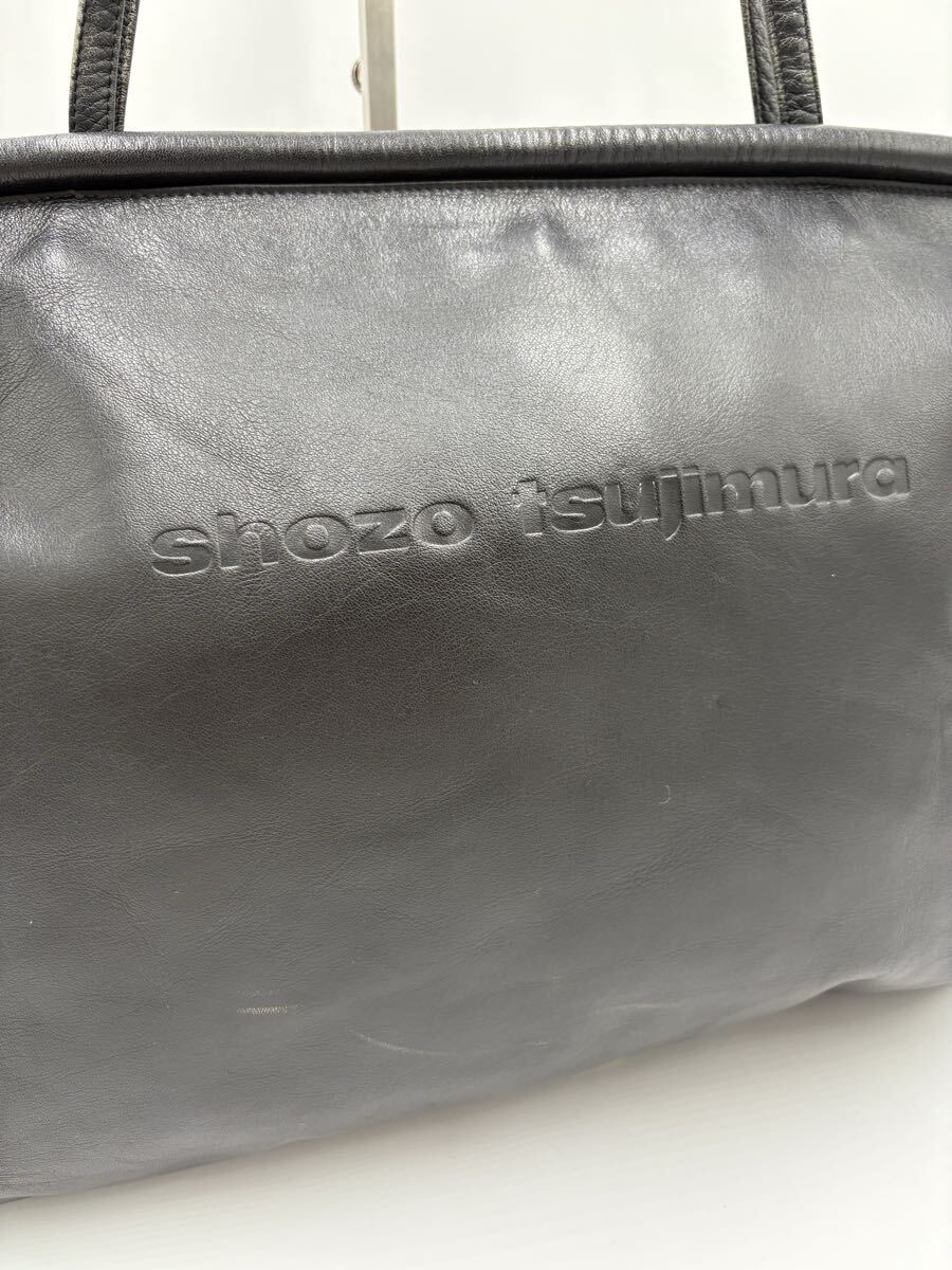 M ■ 大容量収納 '極上レザー使用' shozo tsujimura ショウゾウツジムラ LEATHER トートバッグ 手提げ 肩掛け鞄 ハンドバッグ カバン 黒系