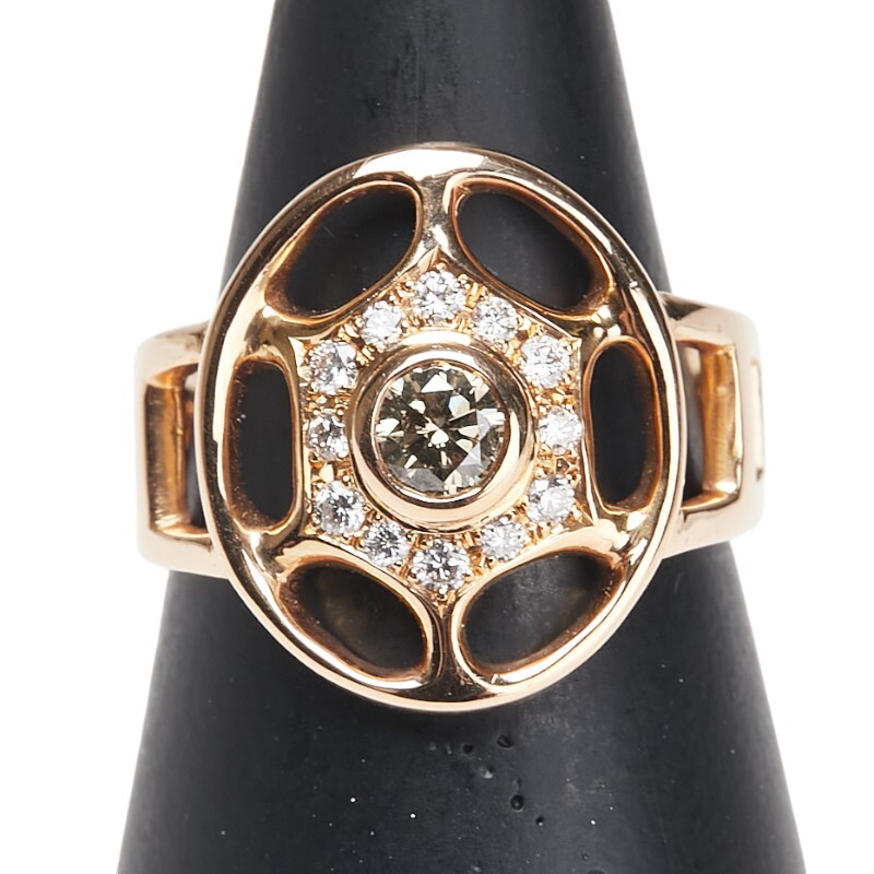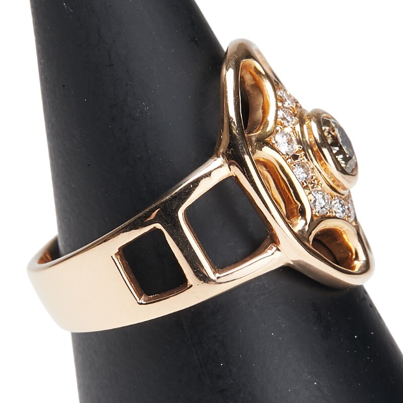 K18PG ピンクゴールド ブラウンダイヤ0.256ct ダイヤ0.18ct リング 指輪 レディース 13号 中古