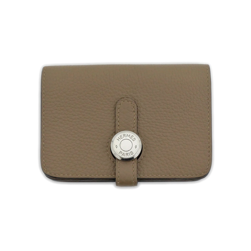 【名東】エルメス ドゴン カードケース ブラウン系 シルバー金具 トゴ U刻印 レザー 名刺入れ
