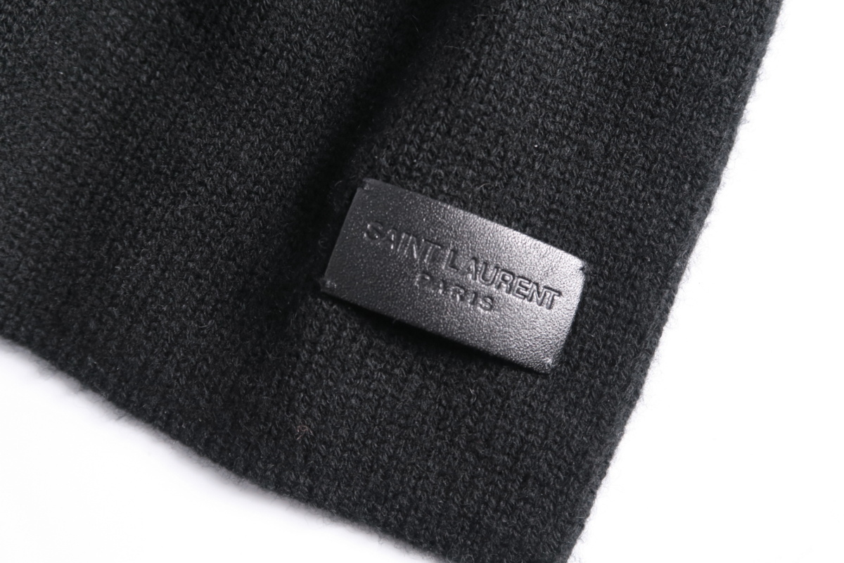 価格12万新品本物サン ローランSAINT LAURENT【肌触り◎カシミア100%】革タグ付!!人気のロング丈!!マフラー/メンズ/黒×白