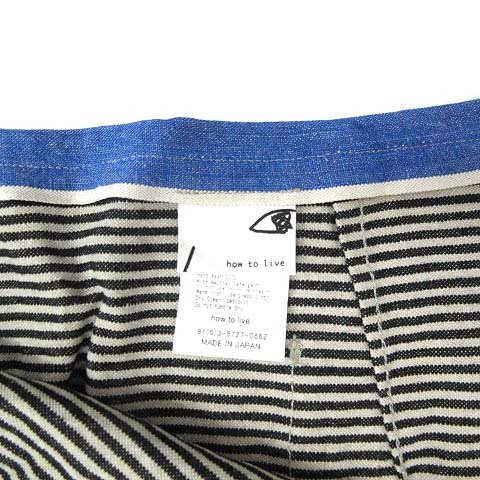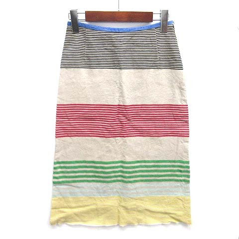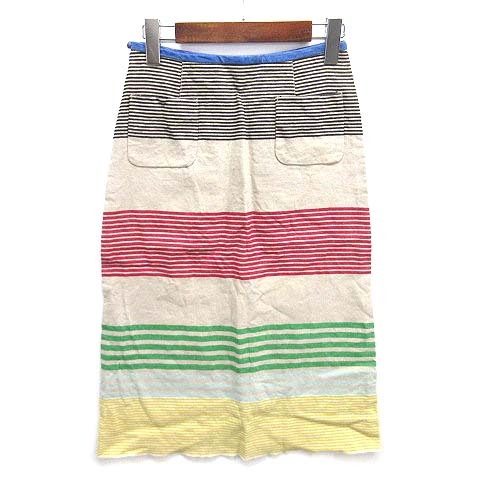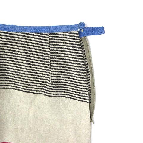 ハウトゥリブ How to live 勝屋まゆみ リネン ボーダー スカート 膝丈 グレーベージュ マルチカラー 38 レディース