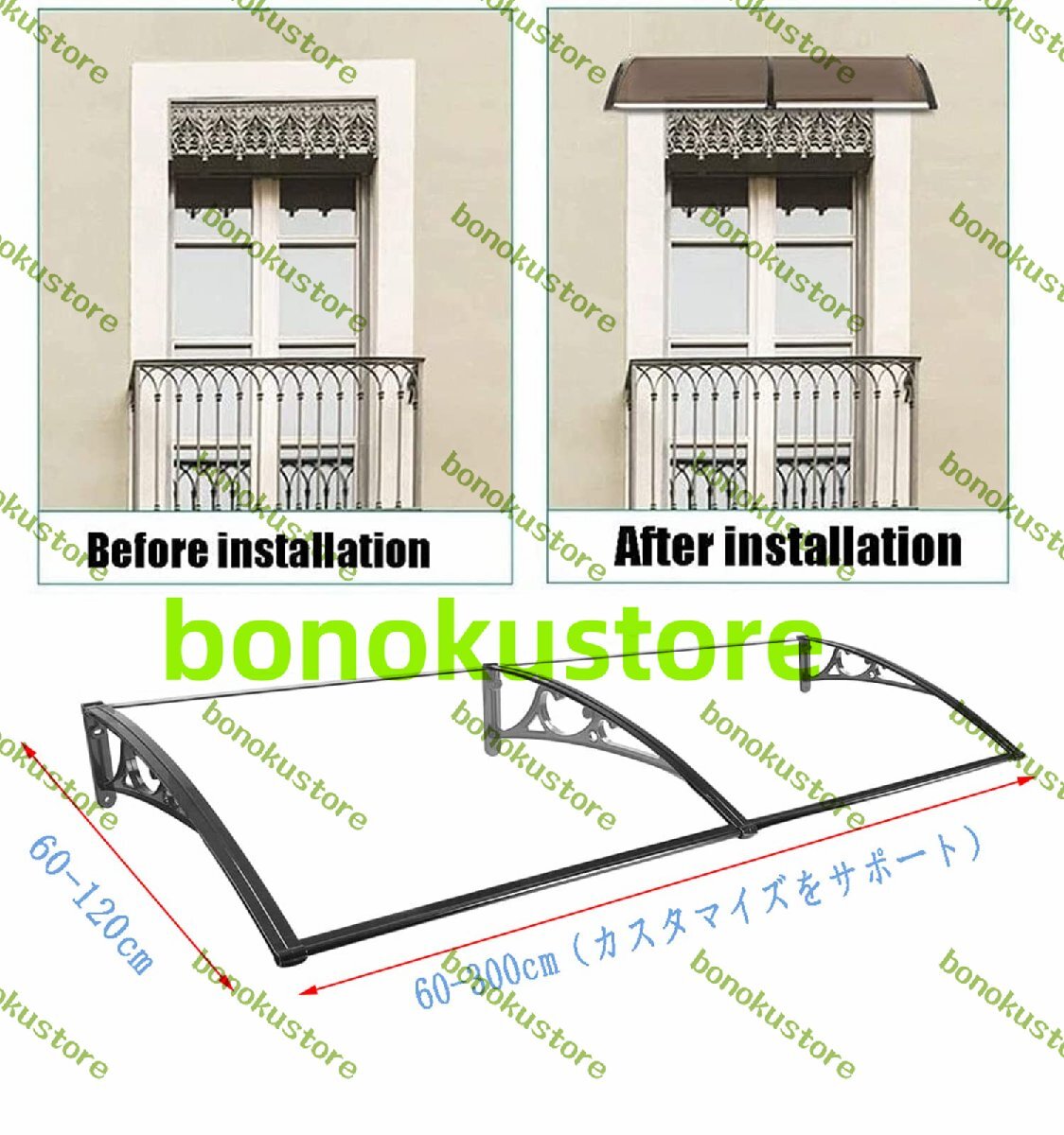 テラス屋根 ひさし雨よけ玄関屋根 梅雨対策 住宅用 120x300cm パティオ日除け 後付け 雨雪パネルをミュート ブラケット付き キャノピー テラス サンシェッター ブラックブラケットB