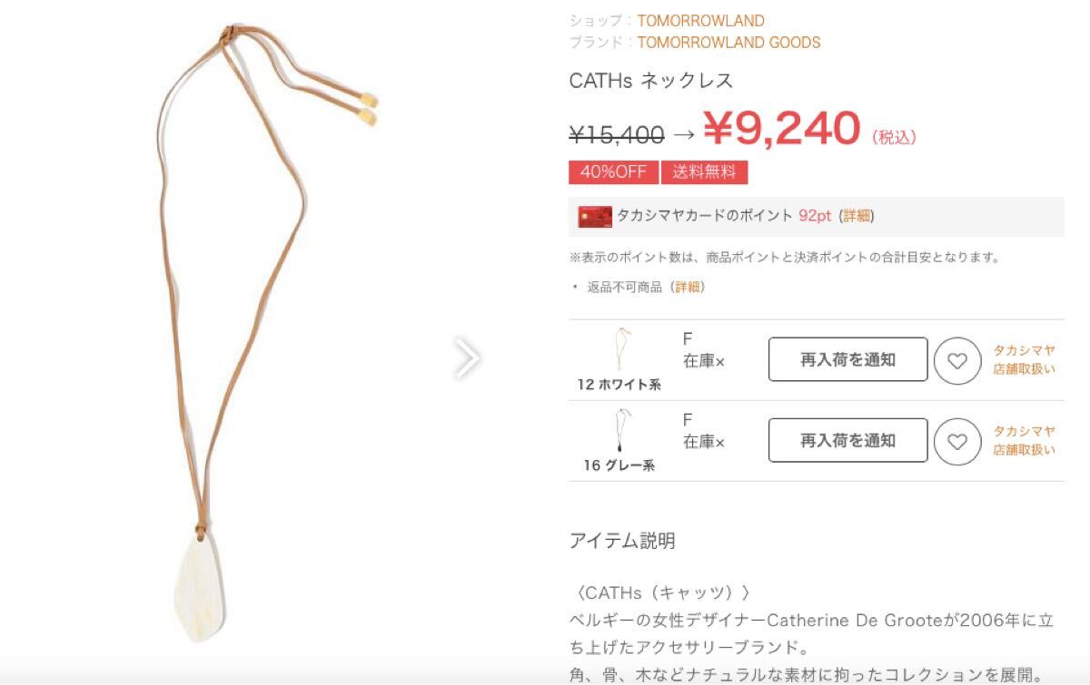 CATHs キャッツ ホーンネックレス トゥモローランド購入 未使用
