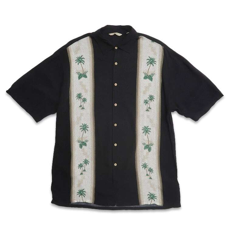 古着 Paradise Collection レーヨン アロハシャツ ハワイアンシャツ ブラック 表記:L gd406858n w50801