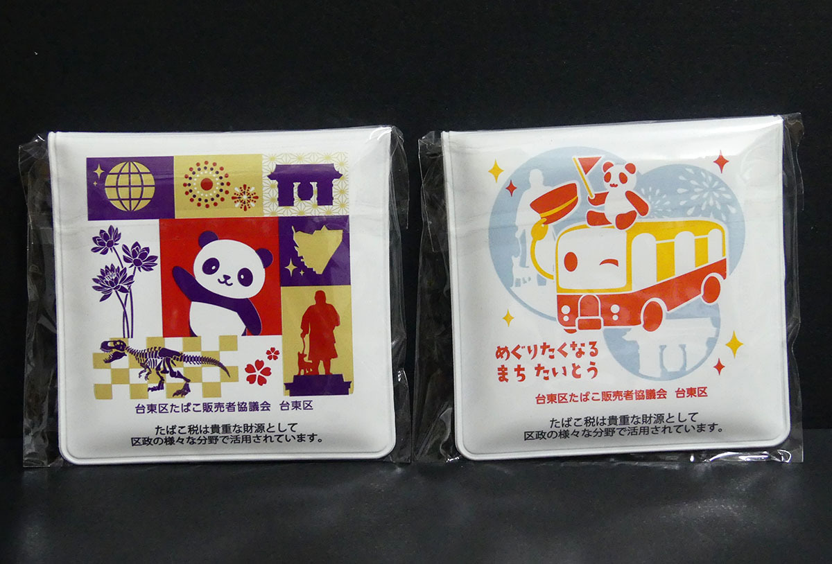 携帯灰皿 ポケット灰皿 2個セット■めぐりん 花火 浅草雷門 パンダ 西郷隆盛像 科博恐竜骨格 たばこ販売業者協議会■非売品■未使用品