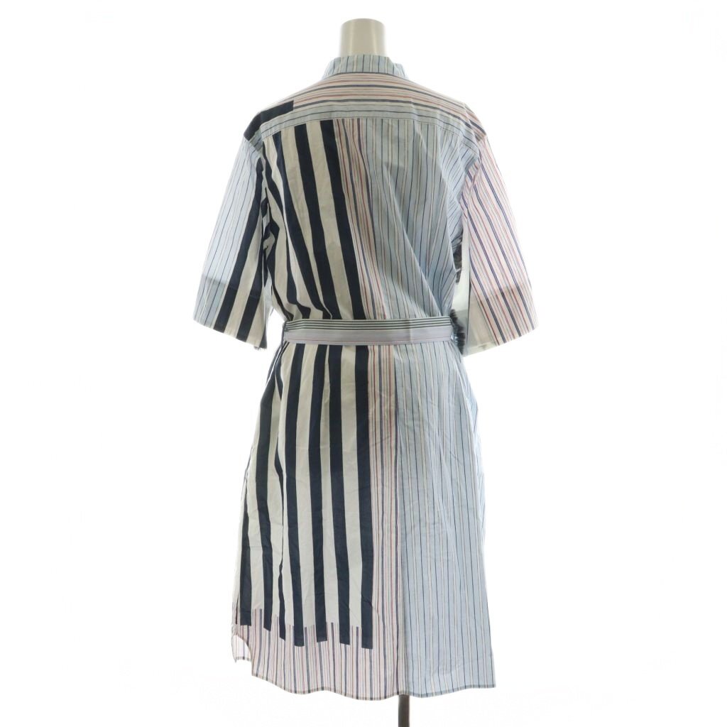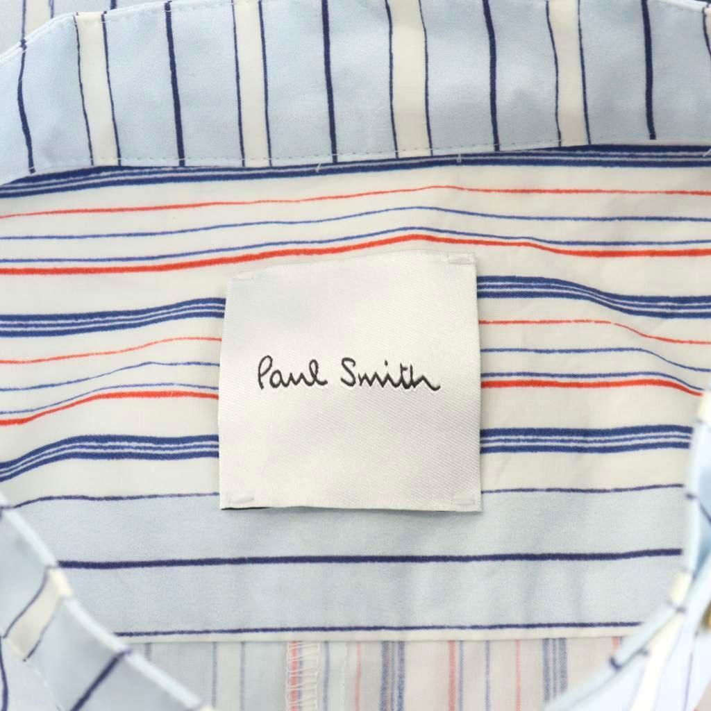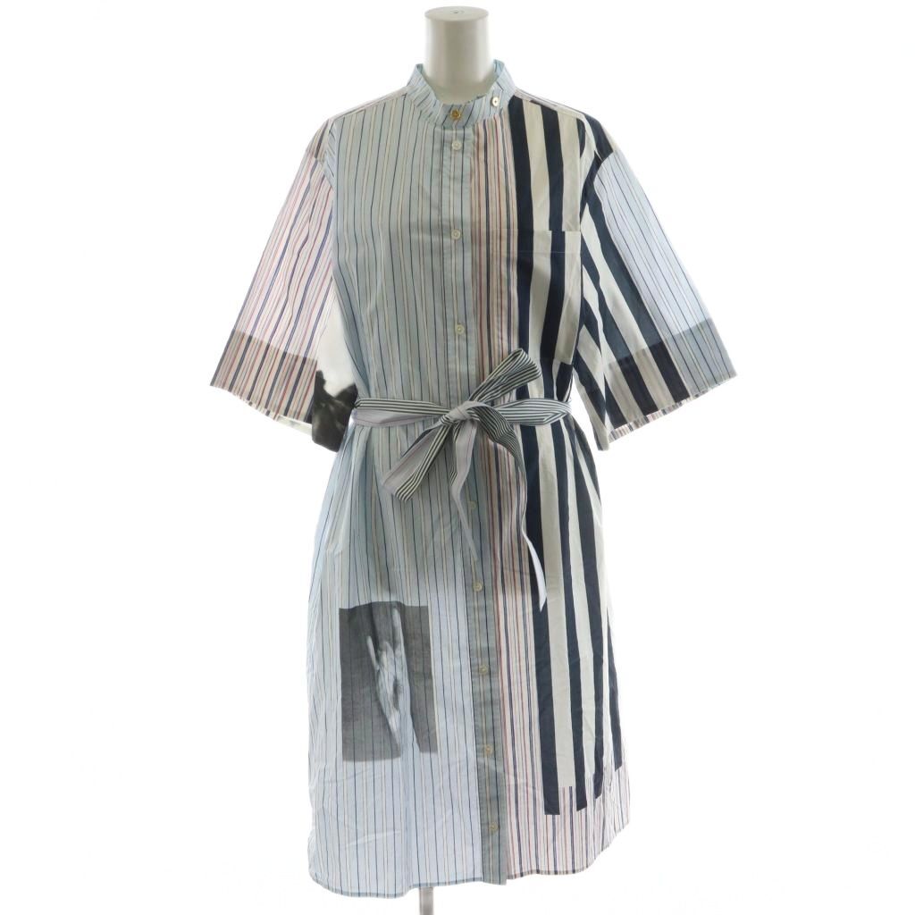 ポールスミス PAUL SMITH シャツワンピース ロング丈 半袖 ストライプ柄 44L マルチカラー 白 ホワイト 紺 ネイビー 水色 赤