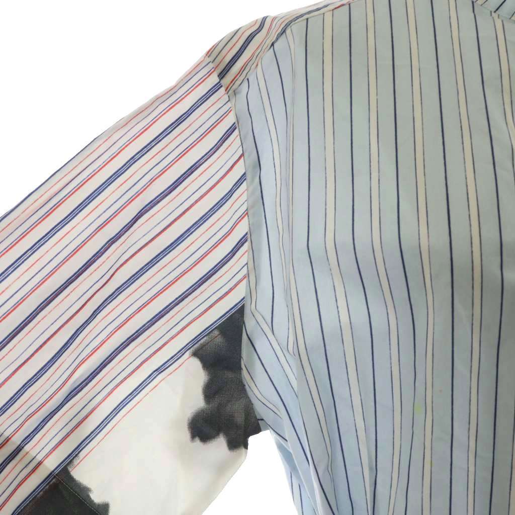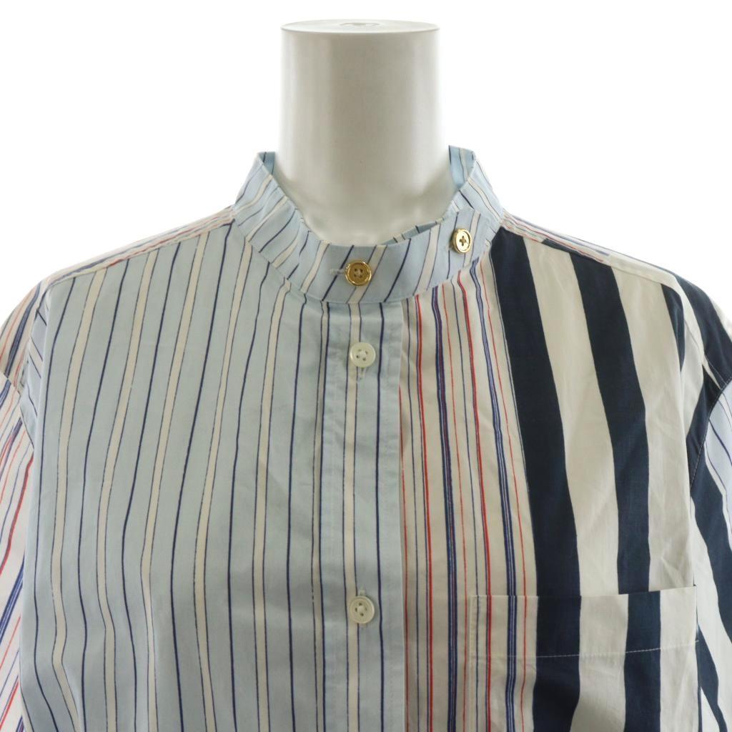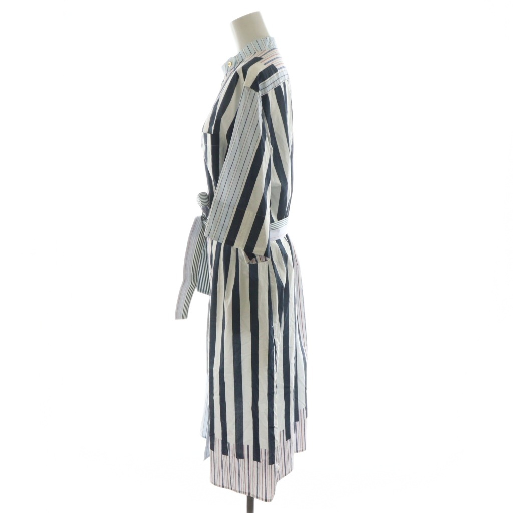 ポールスミス PAUL SMITH シャツワンピース ロング丈 半袖 ストライプ柄 44L マルチカラー 白 ホワイト 紺 ネイビー 水色 赤