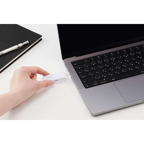 | ●USB Type-C/USB-A両方のコネクターをスライド操作で取り出せるキャップレス設計。 キャップを紛失する心配がありません | |