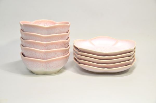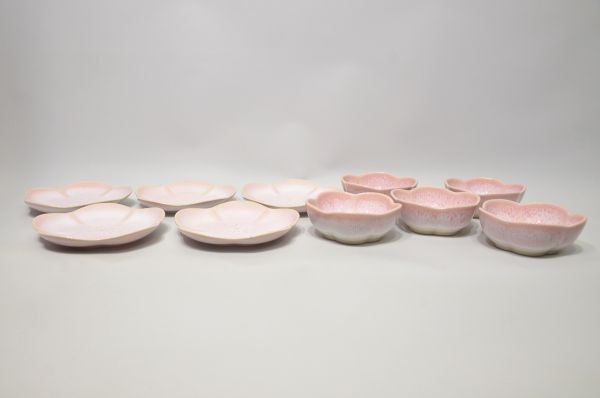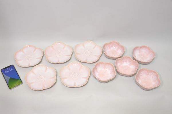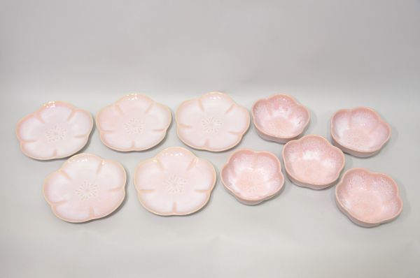 梅型 食器 10点セット 簡易清掃済み 皿 器 取り皿 桜色 淡ピンク