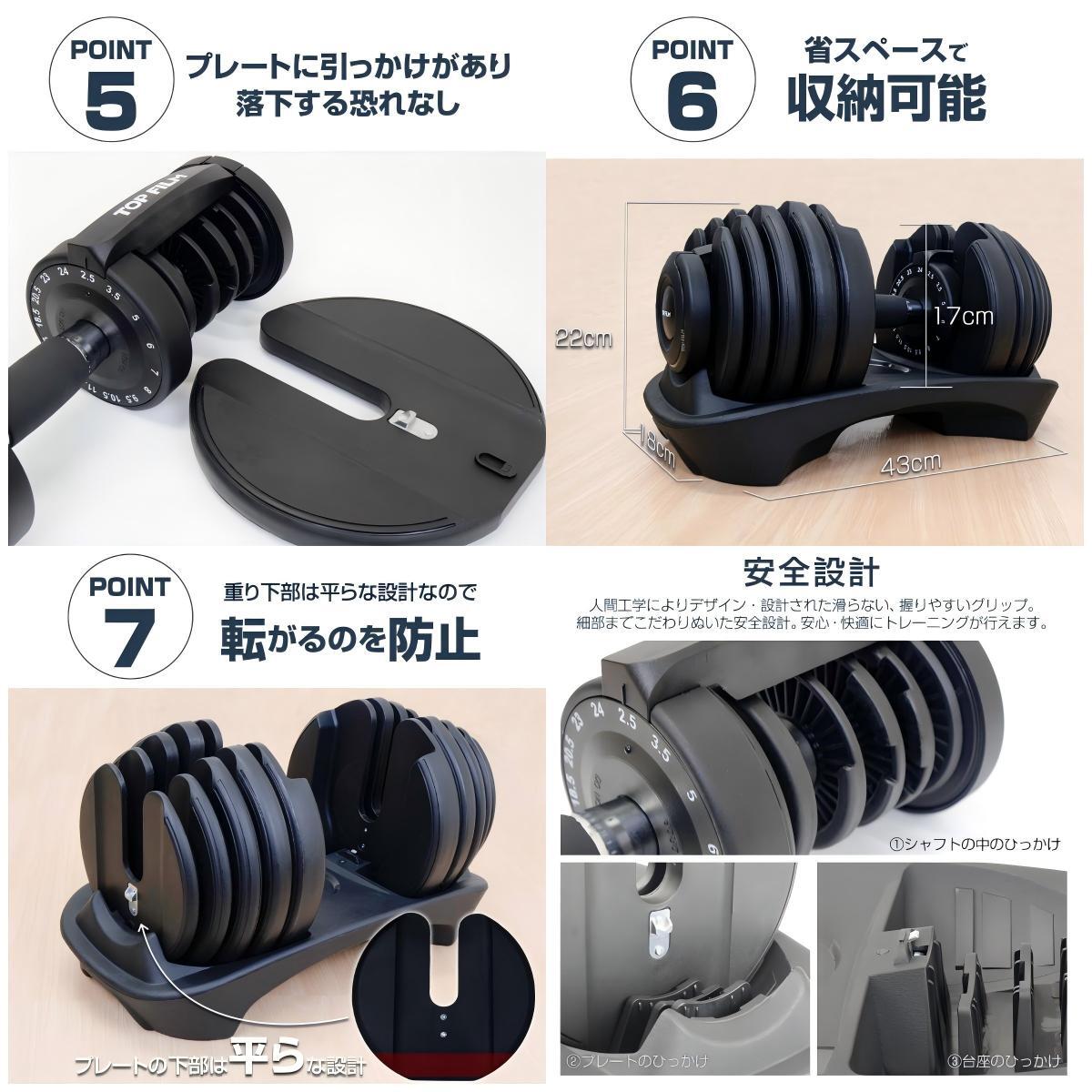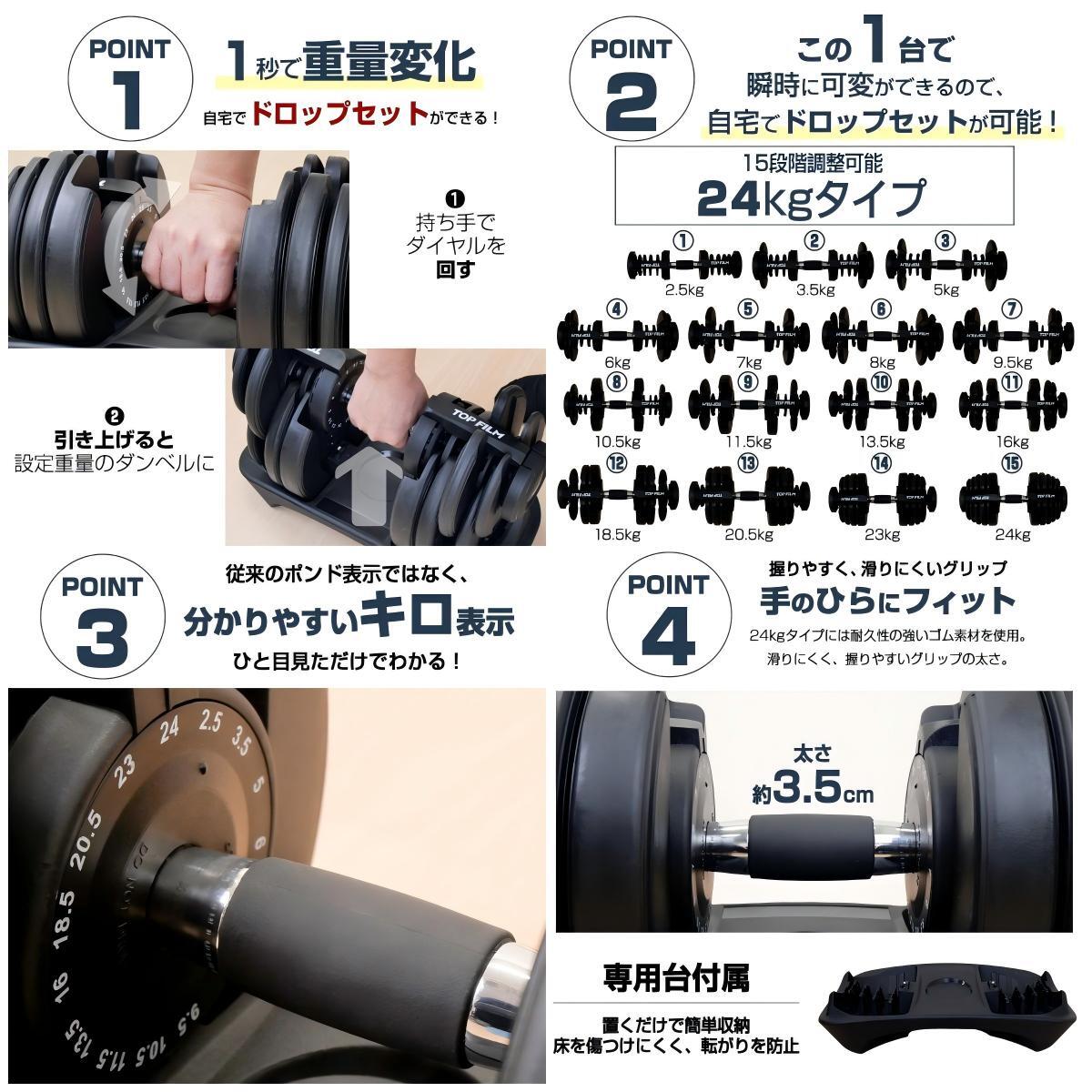 片手で1秒重量変更 ダンベル 可変式 15段階調節 重量調節 可変式ダンベル アジャスタブルダンベル TOP FILM