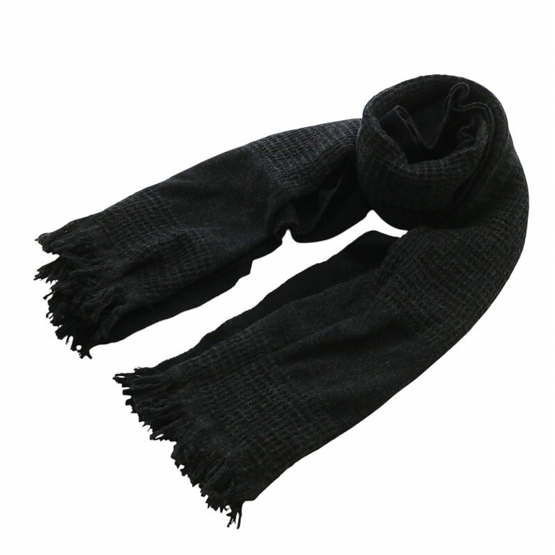 ディーゼル DIESEL マフラー ストール ウール フリンジ ロゴ グレー 黒 ブラック /XZ ■GY37 メンズ
