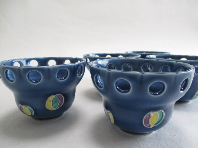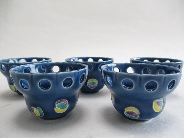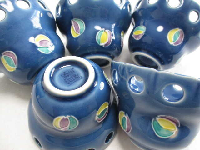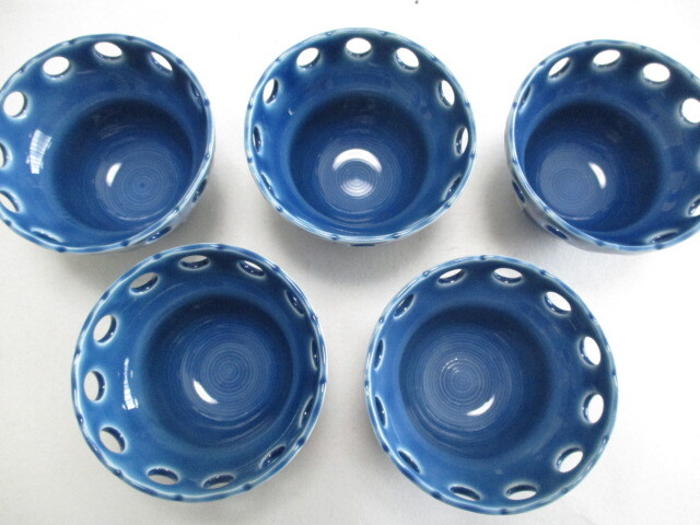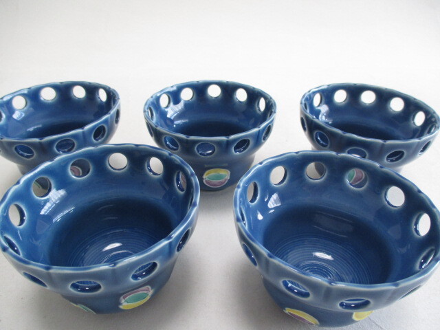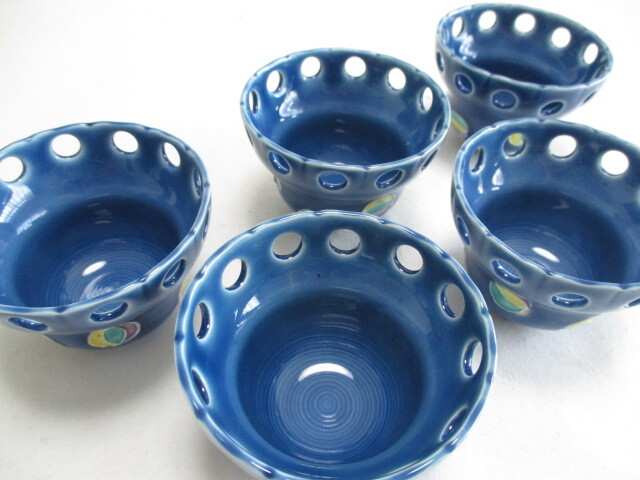 料亭使用 小鉢 5個 /豆鉢 小付け 透かし入り 鉢 手描き 在銘 ②