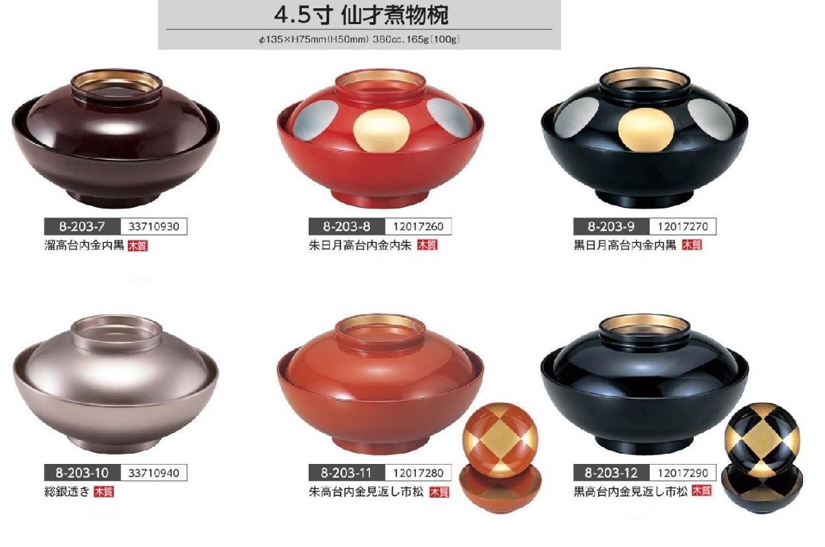 ☆業務用漆器仙才煮物椀4.5寸黒20個日月高台内金内黒越前塗日本製新品