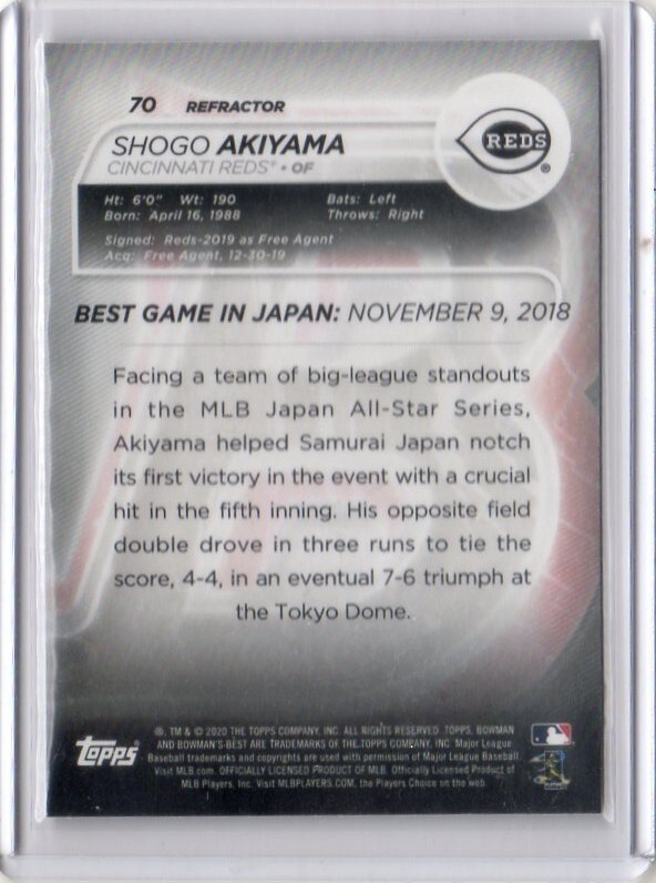 | ★☆秋山翔吾 カード Vol.29 2020BOWMAN BOWMAN'S BEST REFRACTOR #70 ルーキー☆★ | |