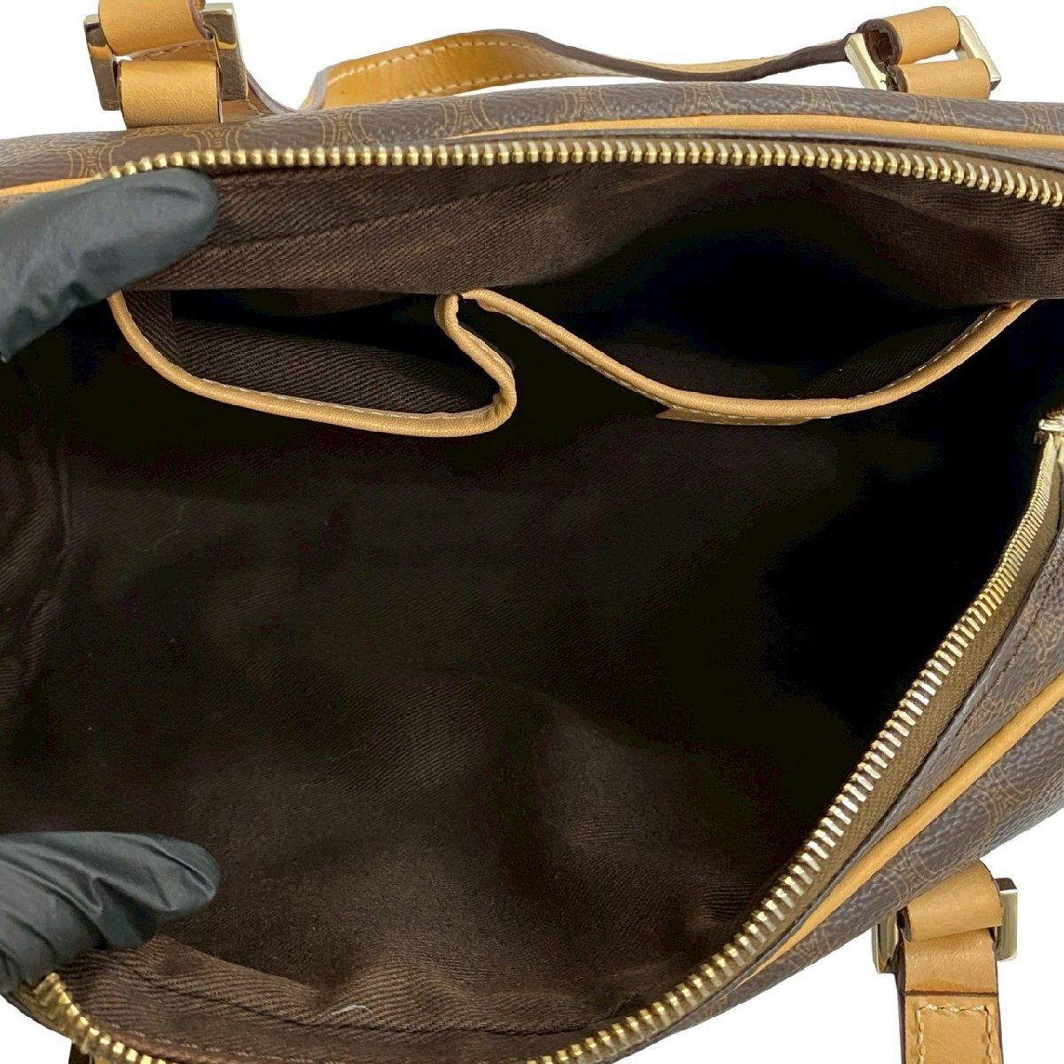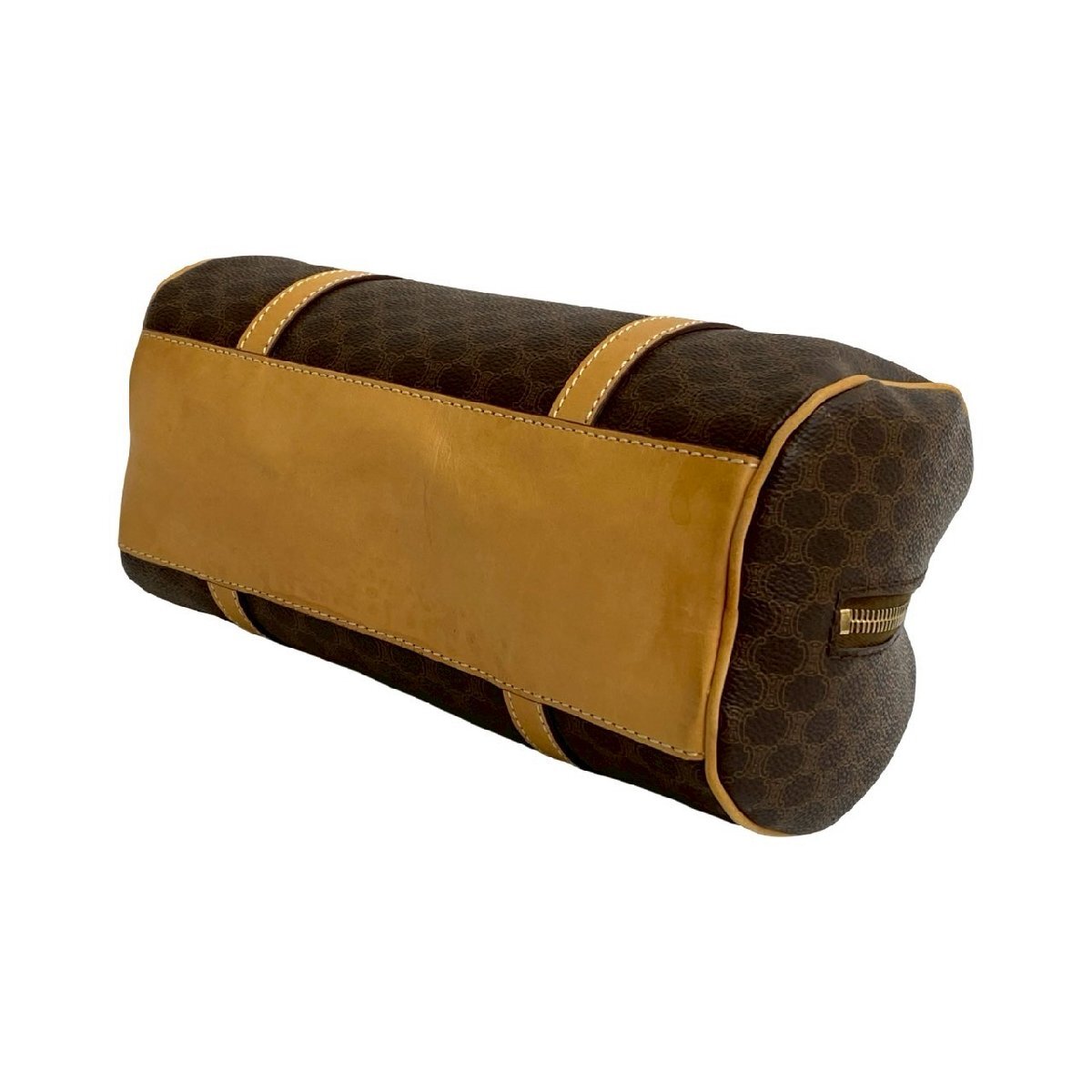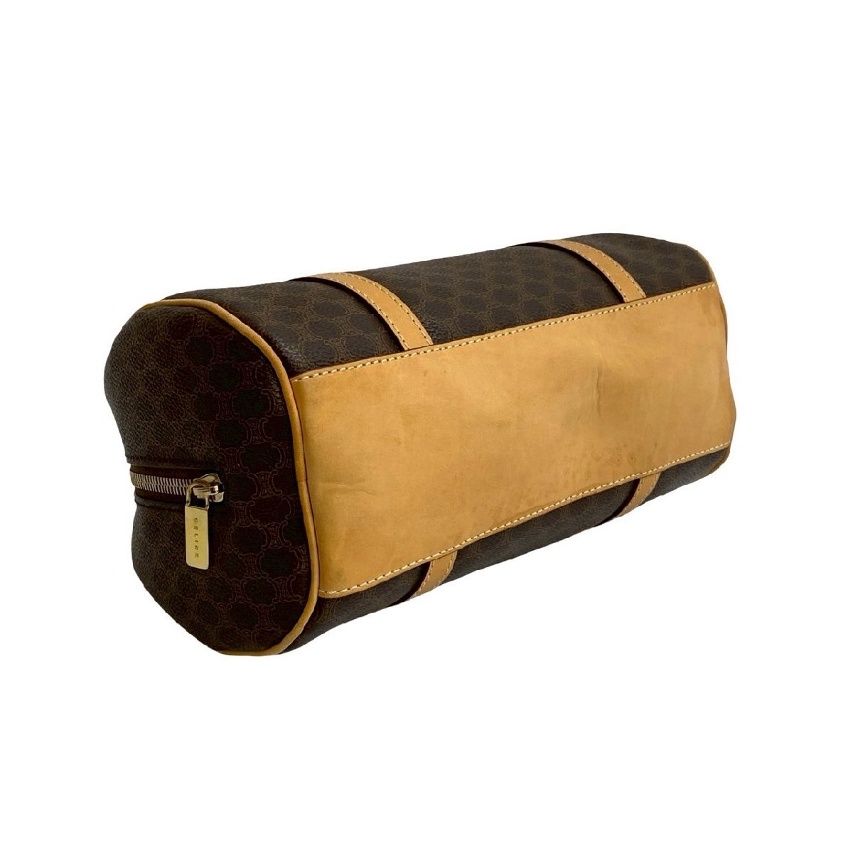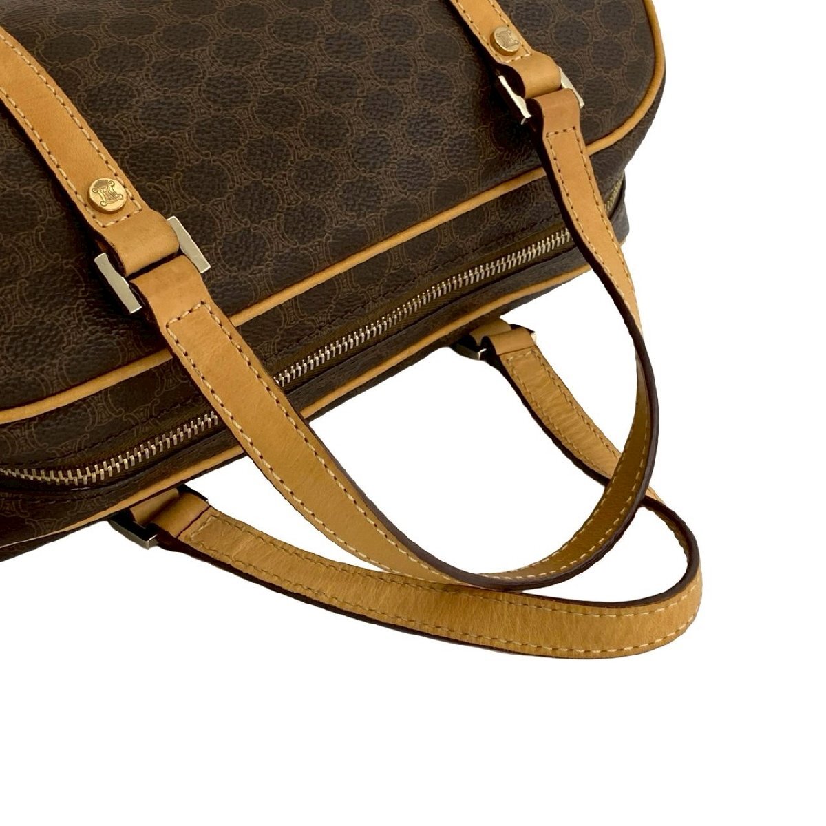 極 美品 袋付き CELINE セリーヌ マカダム ブラゾン トリオンフ 柄 レザー ハンドバッグ ミニ ボストンバッグ ブラウン ベージュ 84953
