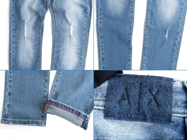 価格4,2万新品本物ARMANI AX/アルマーニAX【大人のこなれ感】ダメージ加工◎コットンデニムパンツ/スリム/ジーパン/Gパン/メンズ/W29
