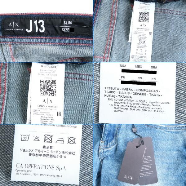 【参考価格4,2万】ARMANI EXCHANGE J13 SLIMダメージ加工デニムパンツ/ウォッシュブルー/サイズ:29R/メンズ/新品未使用
