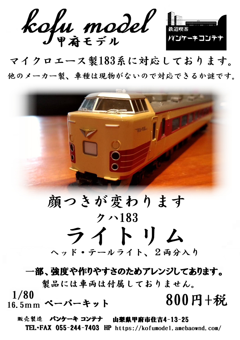1/80のクハ183ライトリムのレーザー切り抜き済みペーパーキットです。