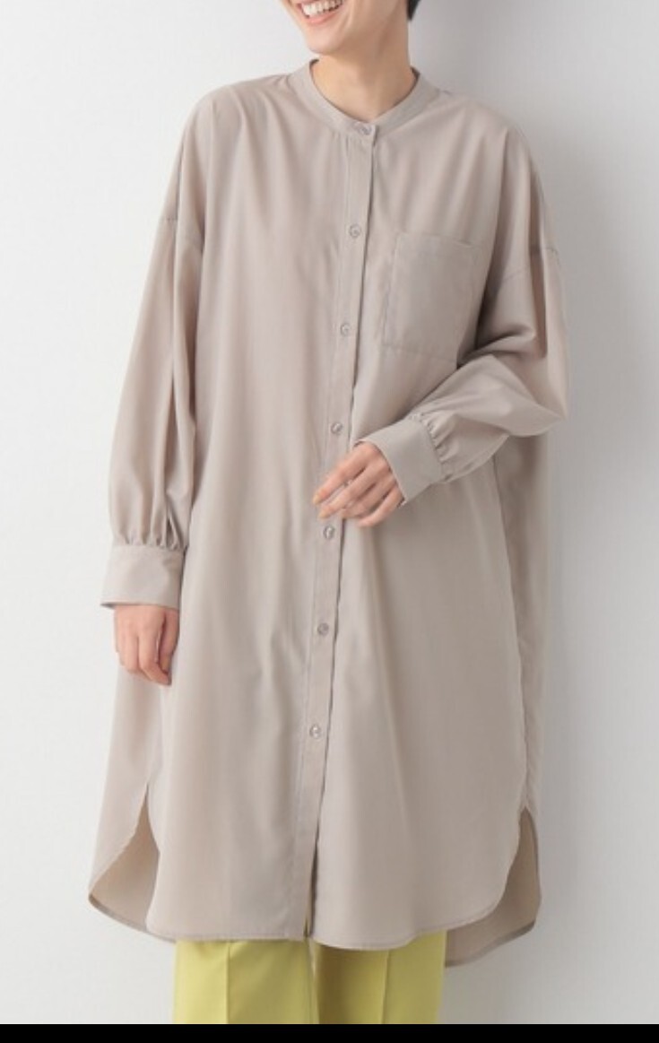 レプシィムのノーカラー膝丈ワンピースです。ベージュ。2回位着用。たたみじわあり。比較的綺麗な状態だと思いますが、細かな点気になる方はご遠慮ください。