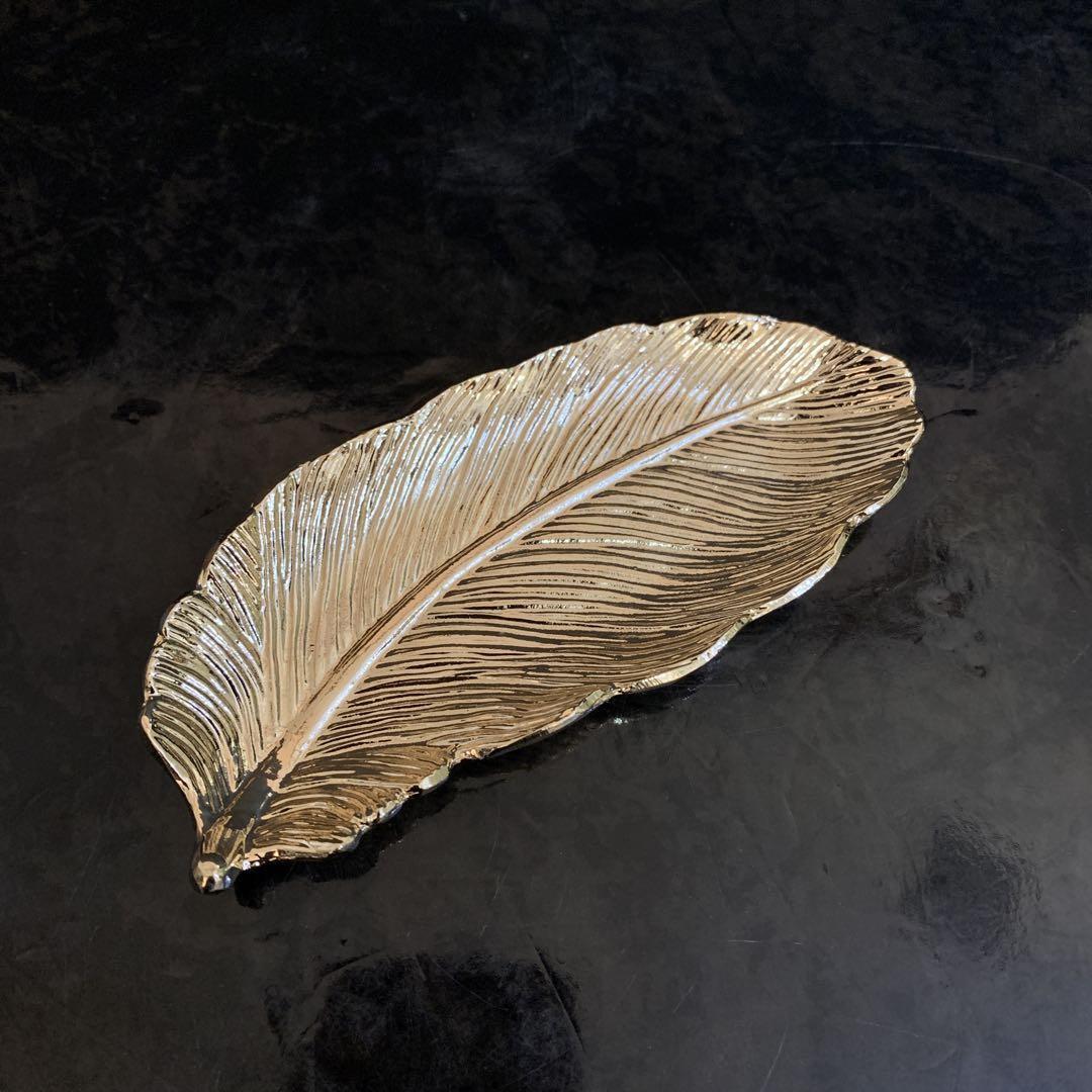 金属製の羽トレイ、ゴールド色がエレガントなデザインでインテリアとしても◎