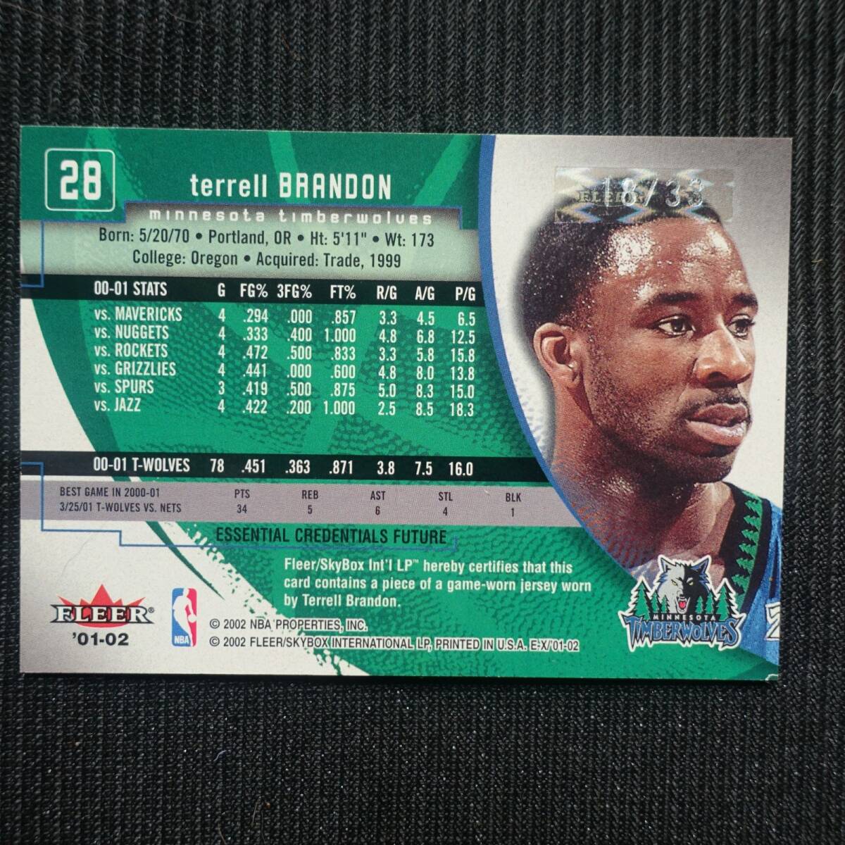 Terrell Brandon 2001-02 Fleer E-X No.28 Credential Future (Blue) Memorabilia #18/33