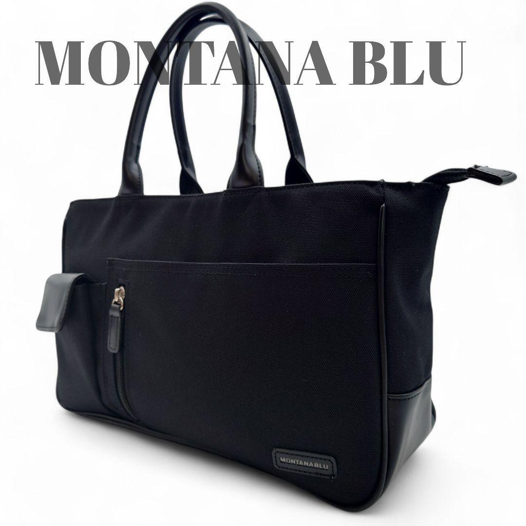 モンタナブルー ハンドバッグ 一点物 黒 レザー ナイロン 自立 男女兼用 メンズ レディース