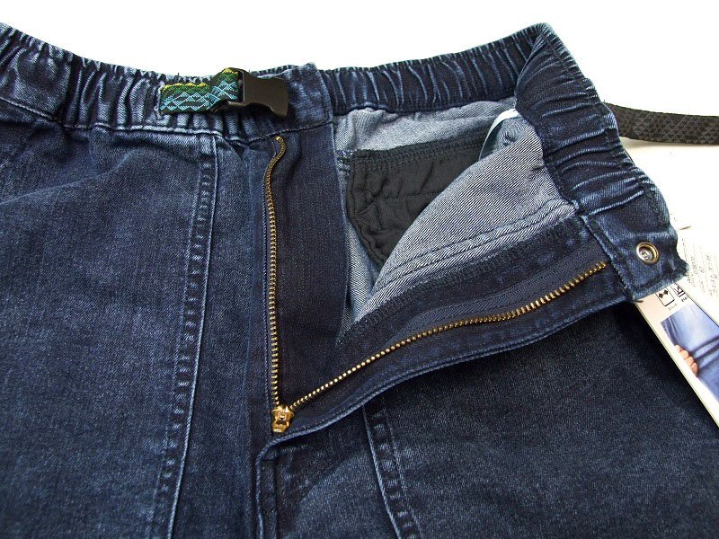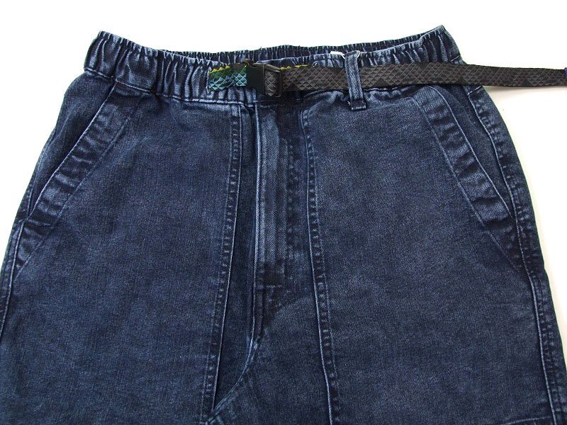 ウエストはサイズ調節可能なウェビングベルト、ゴムで伸縮する機能性に長けたディテール。