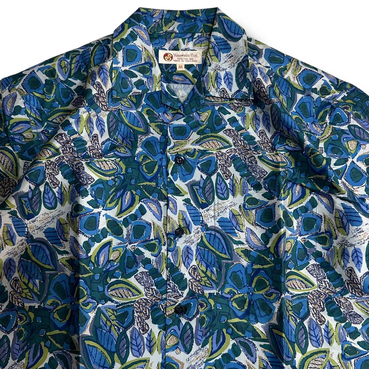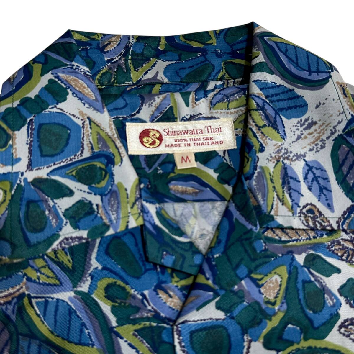 極美品【Shinawatra Thai】VINTAGE シナワット 高級素材 アート総柄 Thai Silk タイシルク100% 半袖シャツ