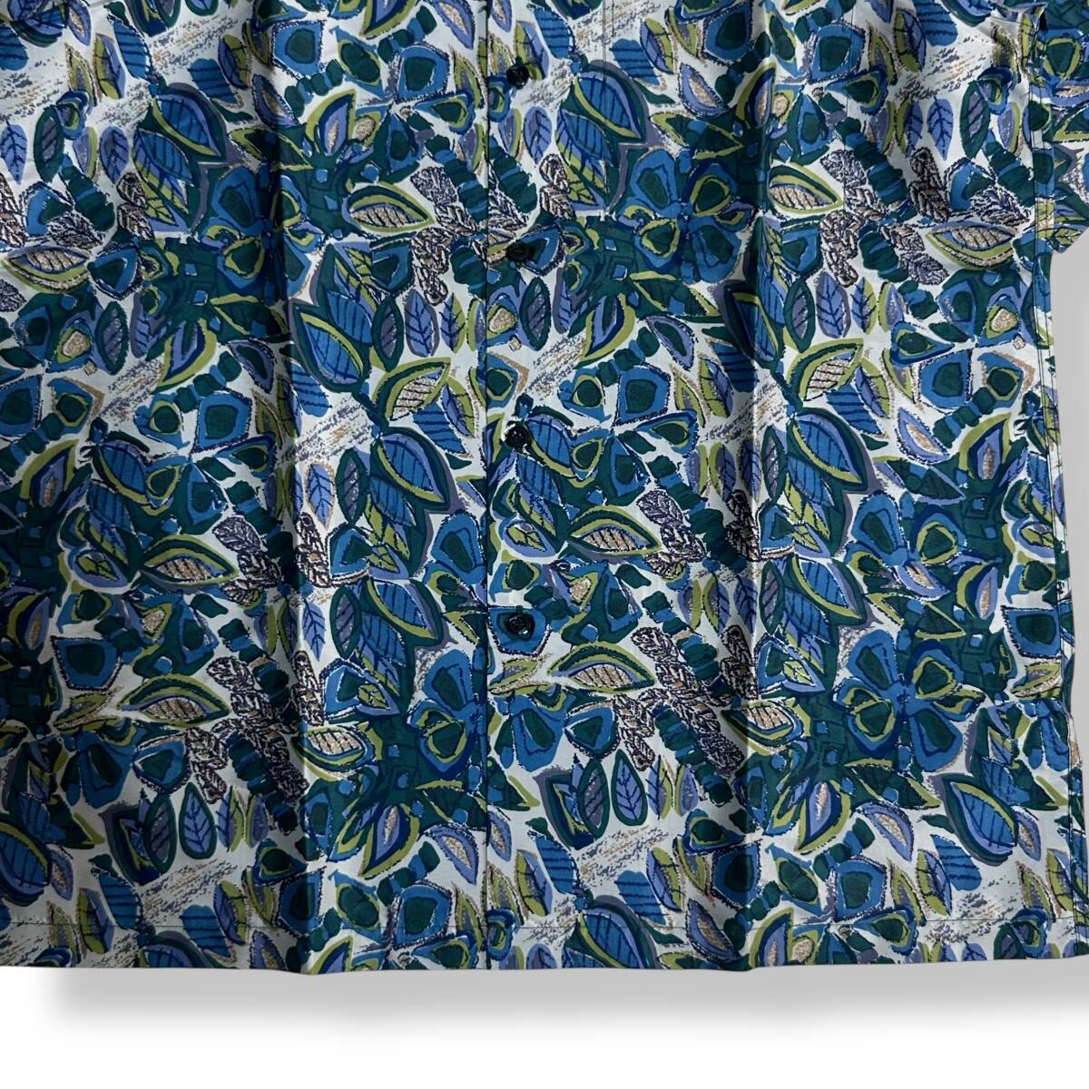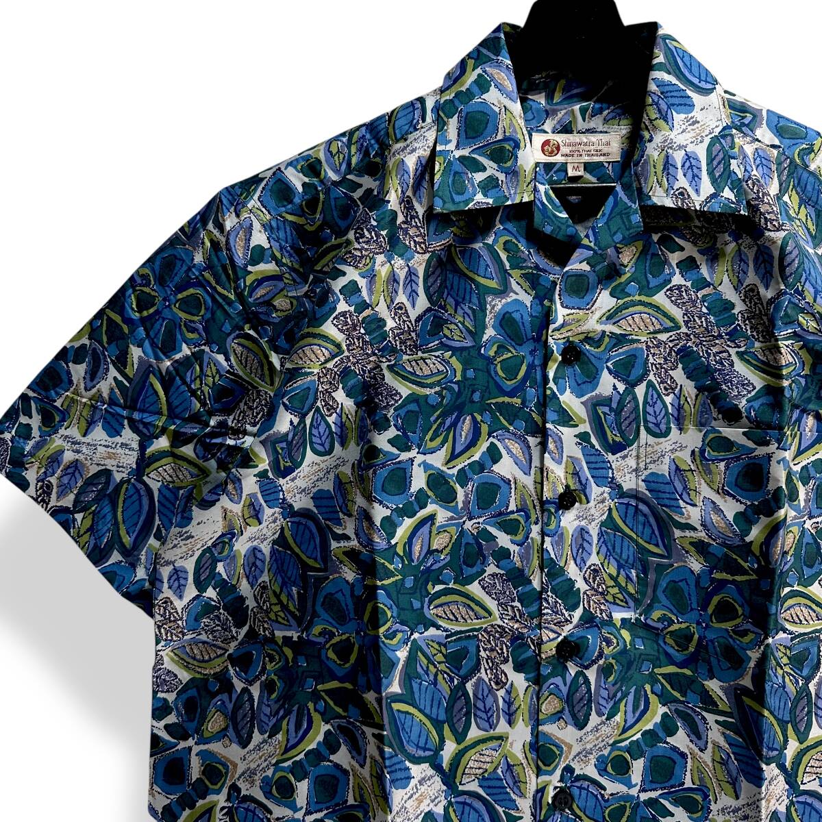 キメ細かい高級のタイシルクを使用したインパクトある総柄ビンテージオープンカラーシャツ