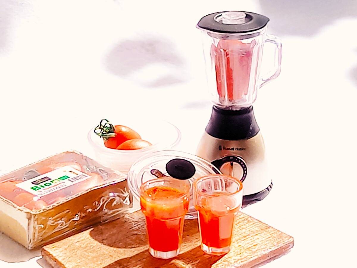 ・トマトジュースのグラス,2(市販ミニチュアを加工しています)
