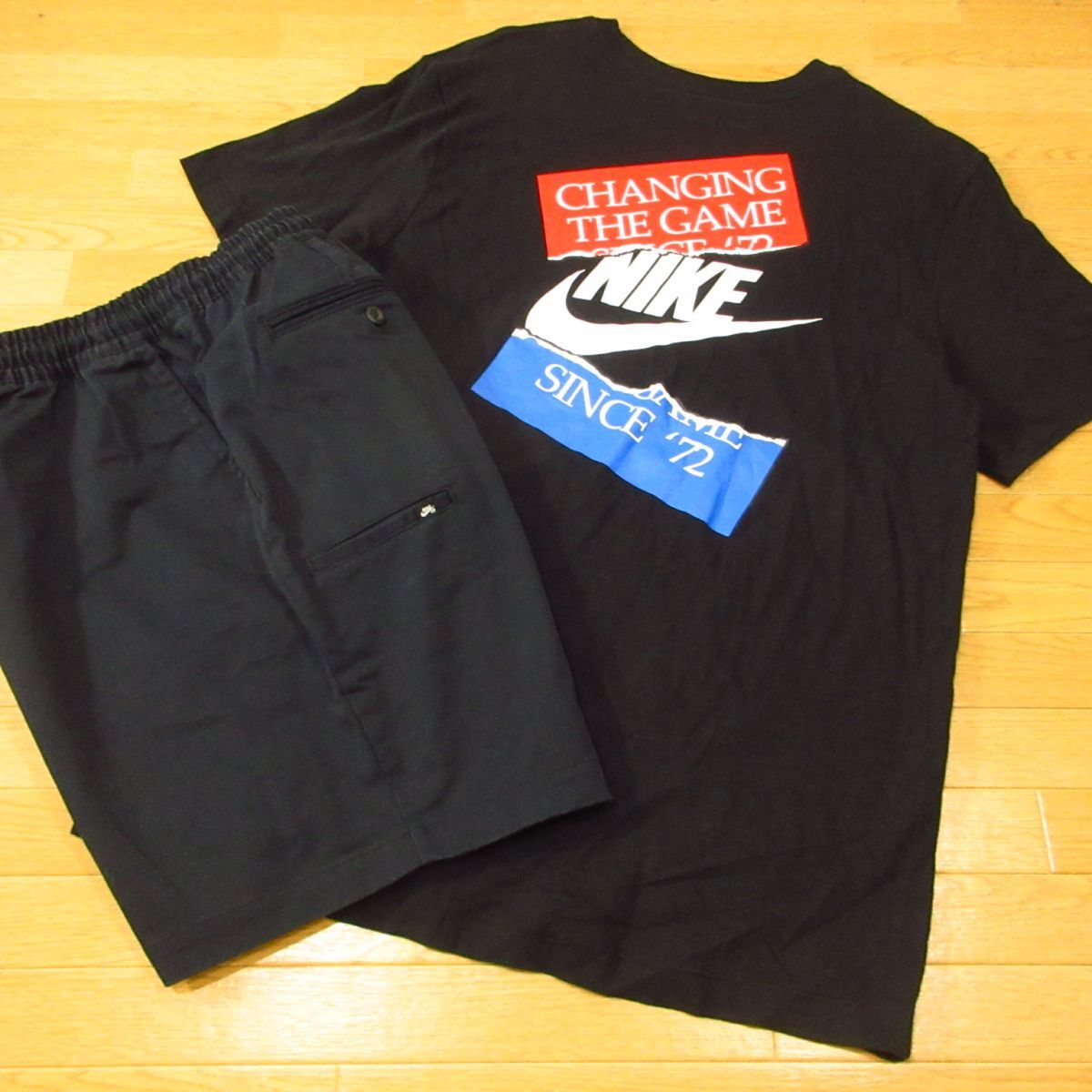 ◎美品!NIKE ナイキ XL 上下セット 半袖 Tシャツ&ハーフパンツ ショートパンツ ストレッチ メンズ 黒 ブラック◆BA3186