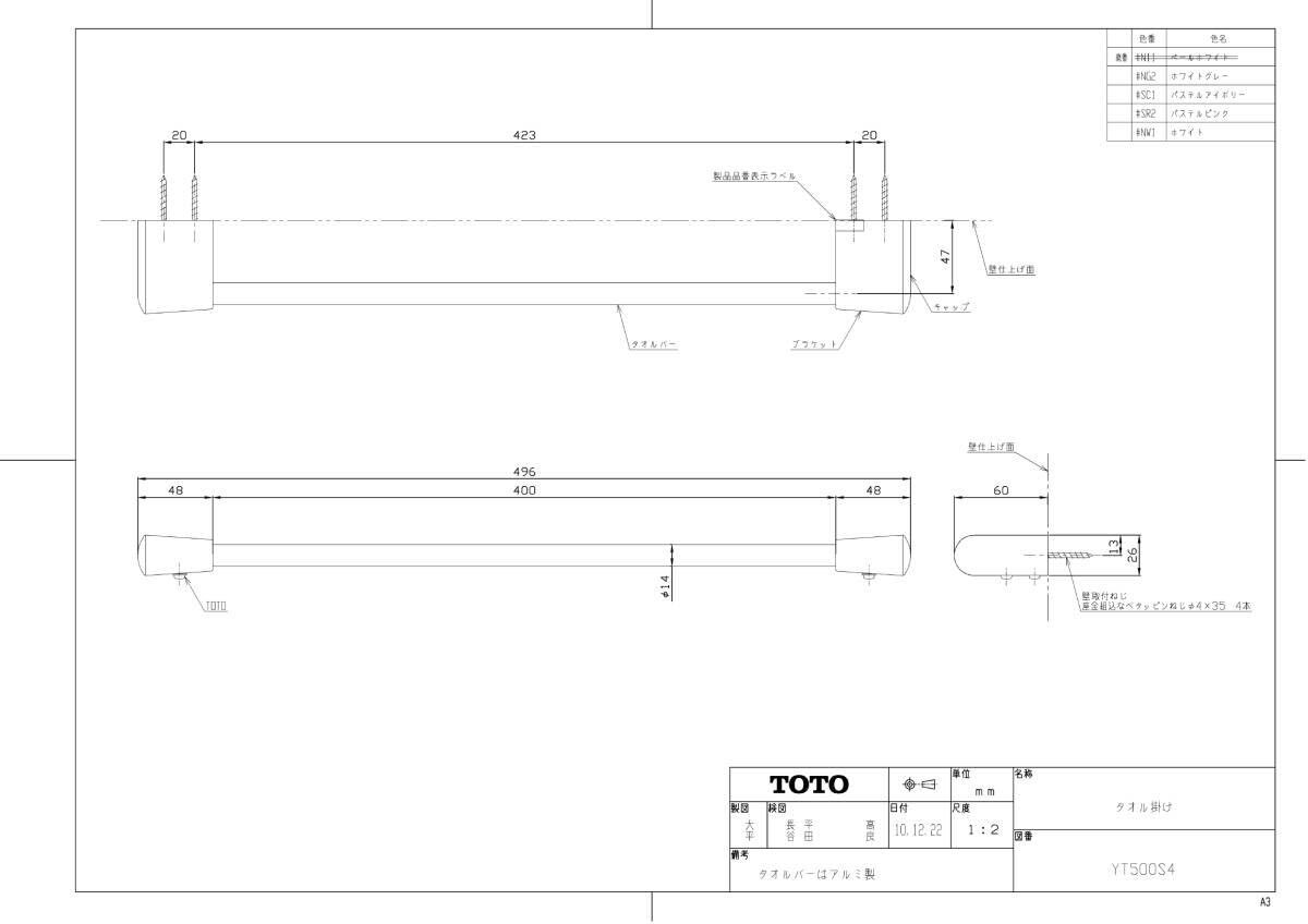TOTO タオル掛け YT500S4#NW1 ホワイト タオルホルダー | ||||