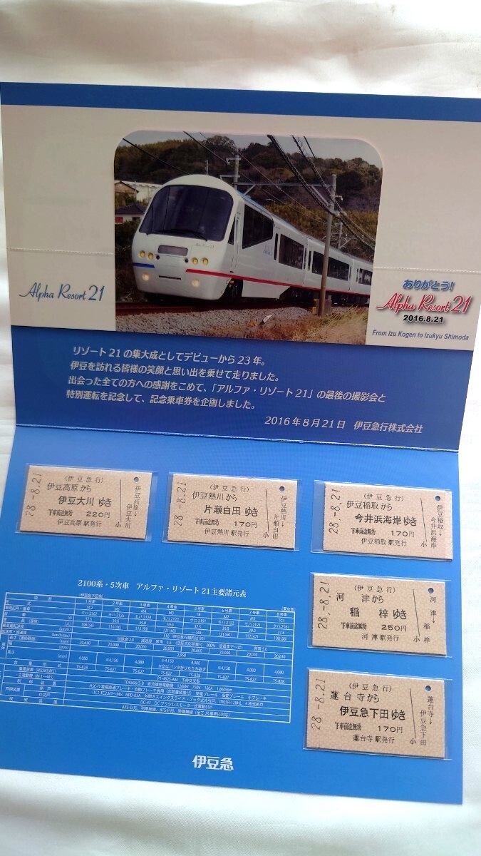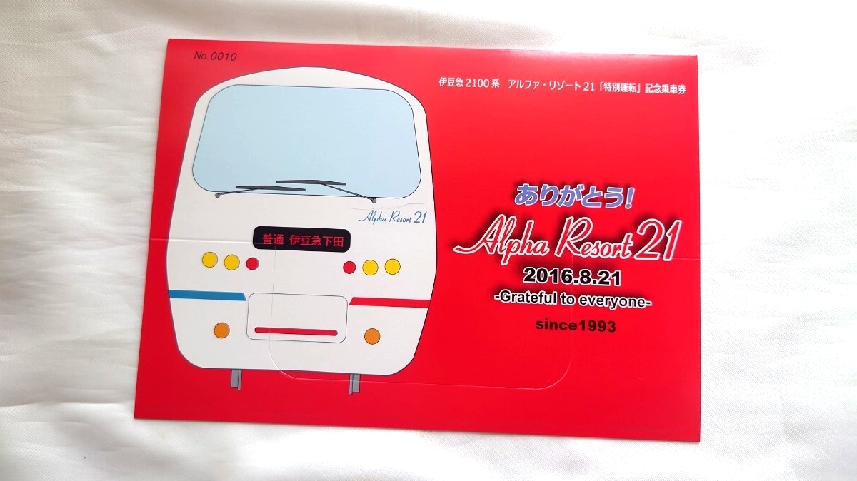 ★伊豆急★ありがとう!アルファリゾート21特別運転記念乗車券★2016年