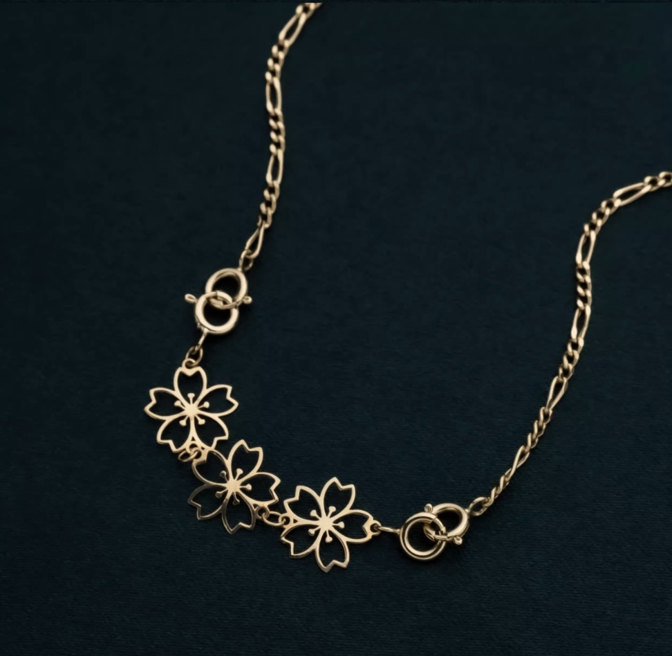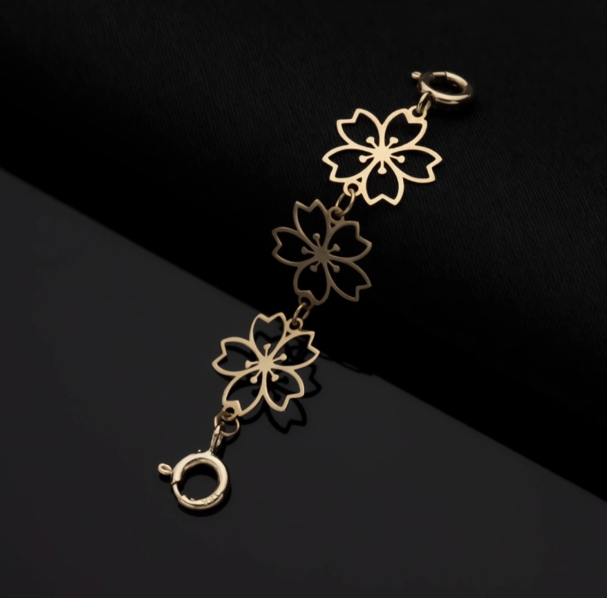 K18YG 引き輪 ヒキワ ひきわ 花 桜 梅 チェーンパーツ ネックレスパーツ YG 18K チャーム 両開口 コマ 花モチーフ 3.8cm 延伸 延ばす