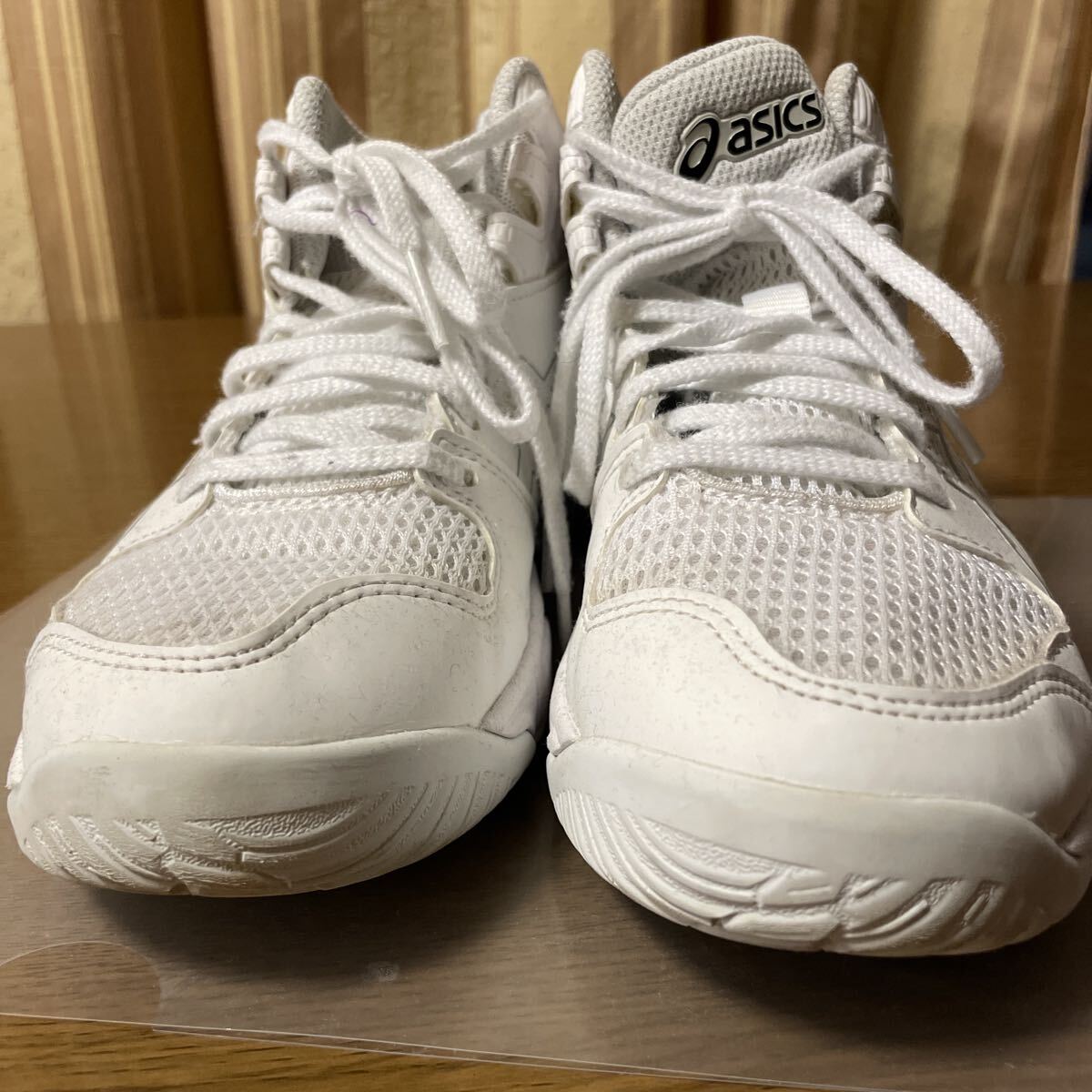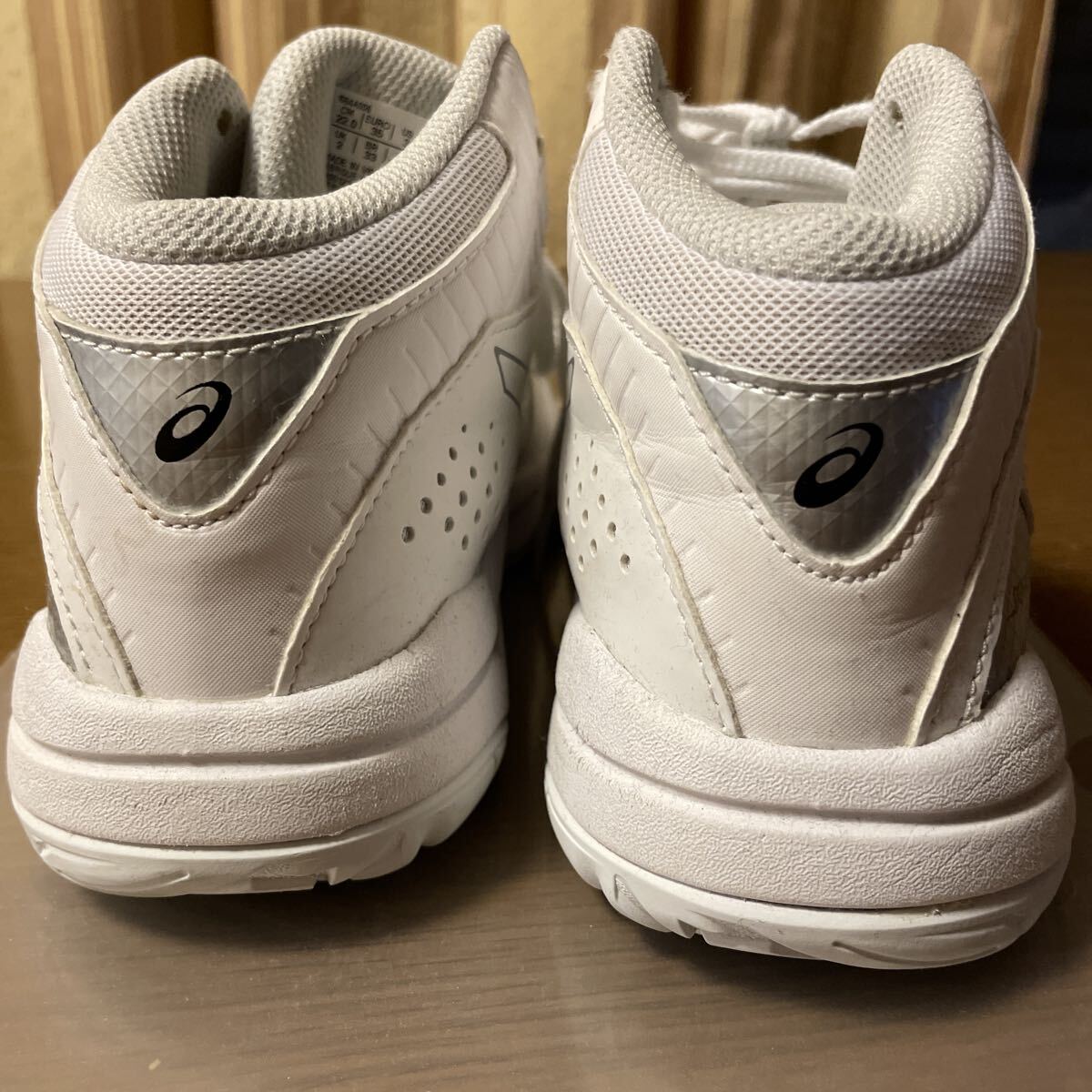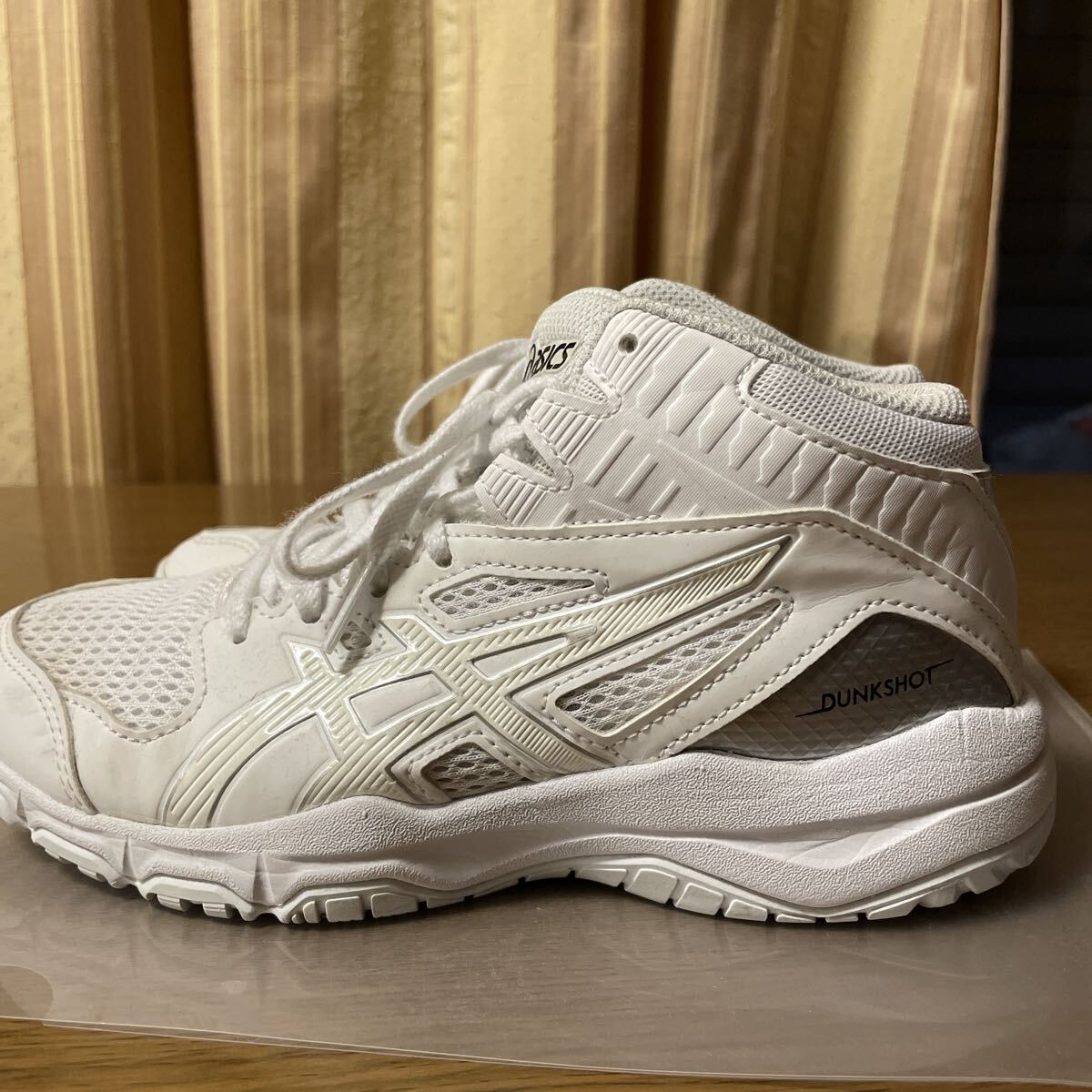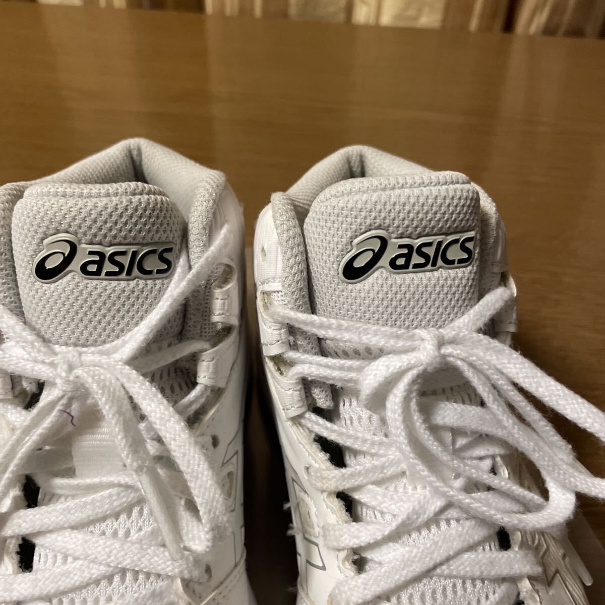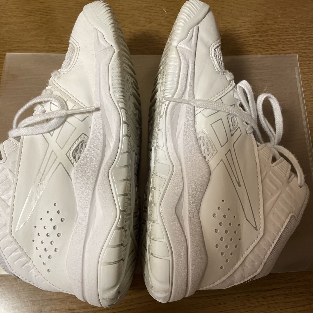子どもがバスケをやめる直前くらいにはいていたものです。そのため数ヶ月、20回くらいしかつかっていません。体育館の中でのみ使用。ファブリーズのみ。洗っていません。