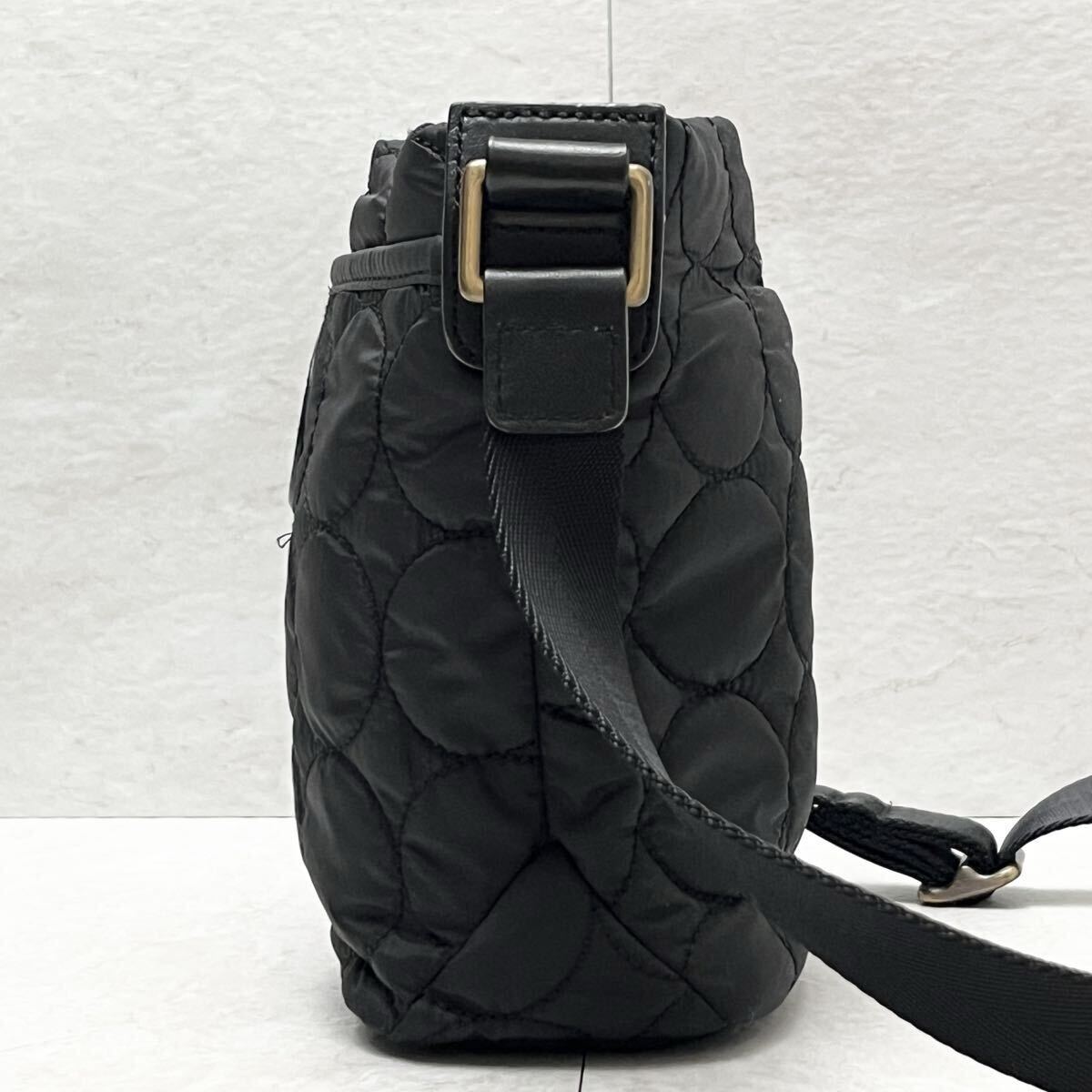 美品/希少!!! ●HUNTING WORLD ハンティングワールド メンズ ショルダーバッグ サコッシュ キルティング ナイロン レザー ブラック