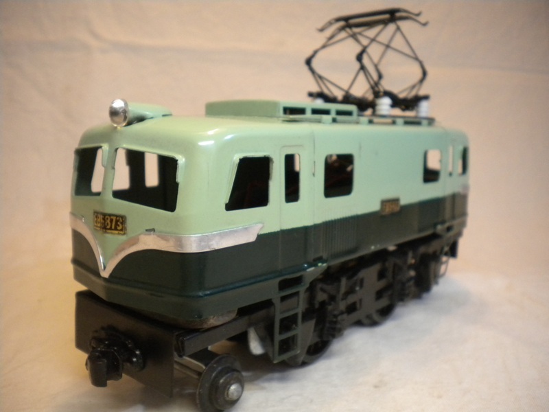 ★稀少 三線式Oゲージ EB5873 電気機関車 先輪付 リレー式 薄緑・濃緑色 サカイ・酒井製作所製 昭和レトロ ビンテージ 完動品 綺麗★