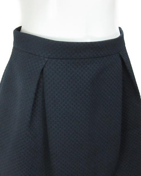 シックな紺の上品なスカート。きちんとかんがあり、ビジネスシーンからオフの日までお使い頂けます。地模様の入ったお生地で、しわになりにくいです。 |
