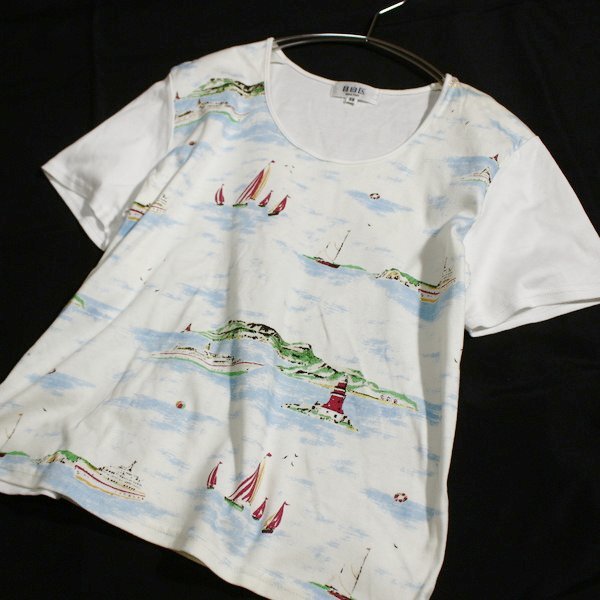 美品 オンワード樫山 自由区 可愛い プリント柄 半袖Tシャツ 38号 M 春 夏 25B08