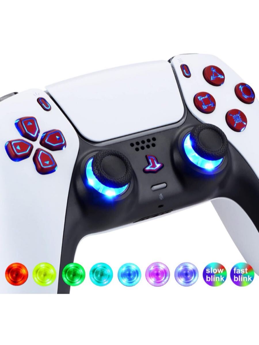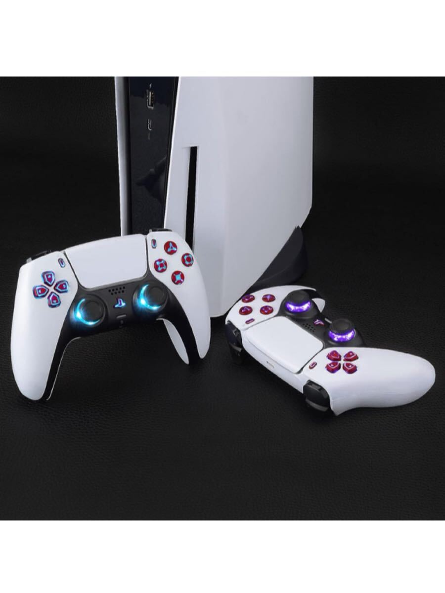 ps5コントローラー純正品に対応LEDキットはボタンコントロール、十字キー、シェア&オプションホームボタン、フェイスボタン、サムスティック2つが付きます。