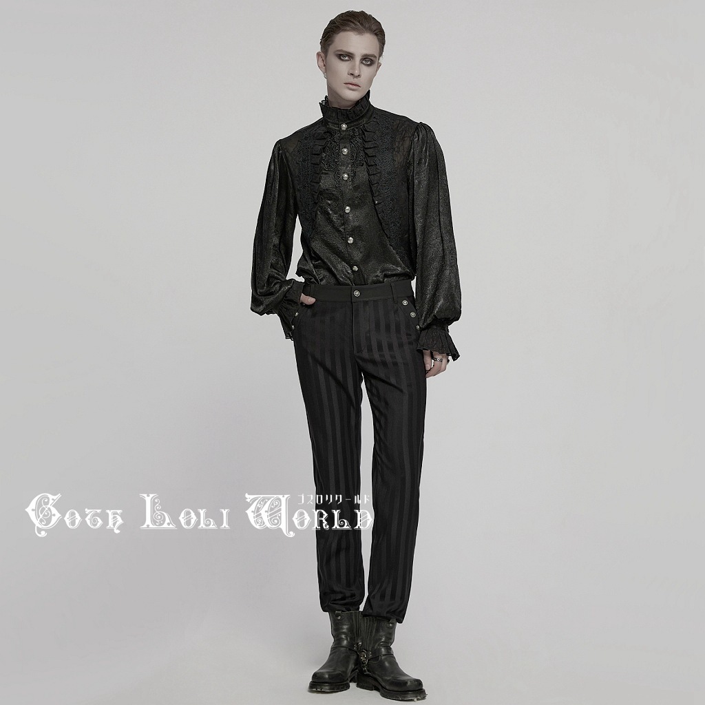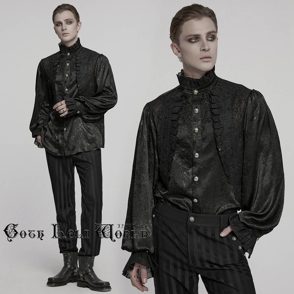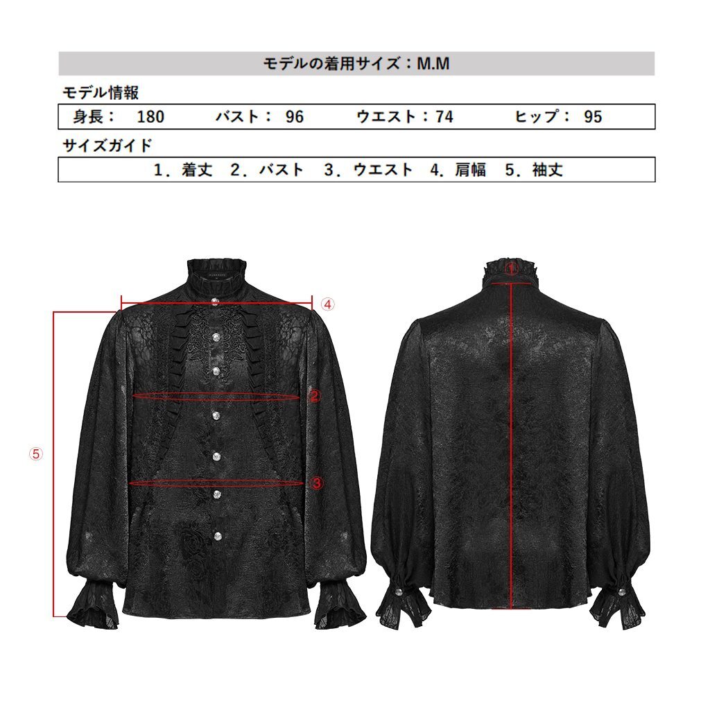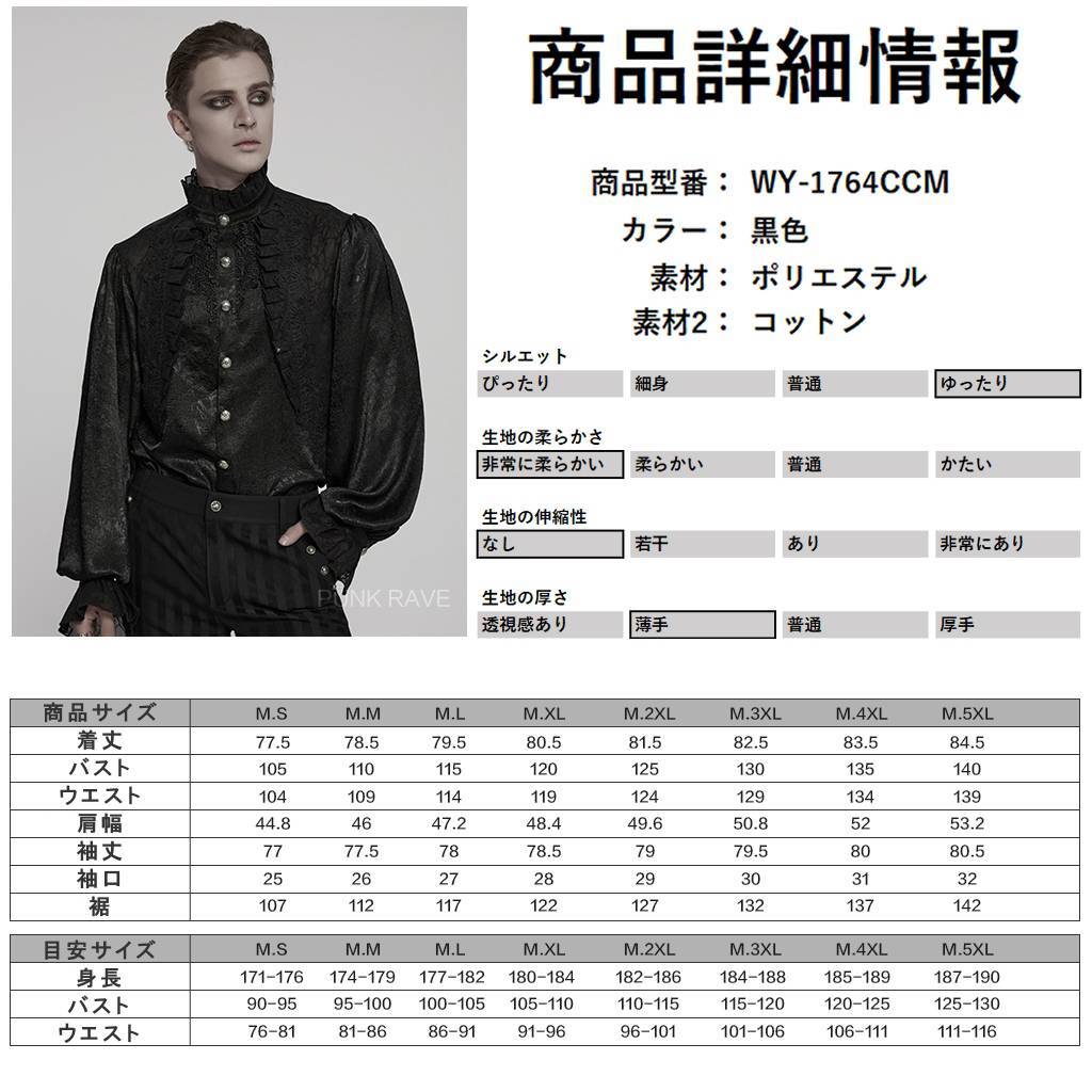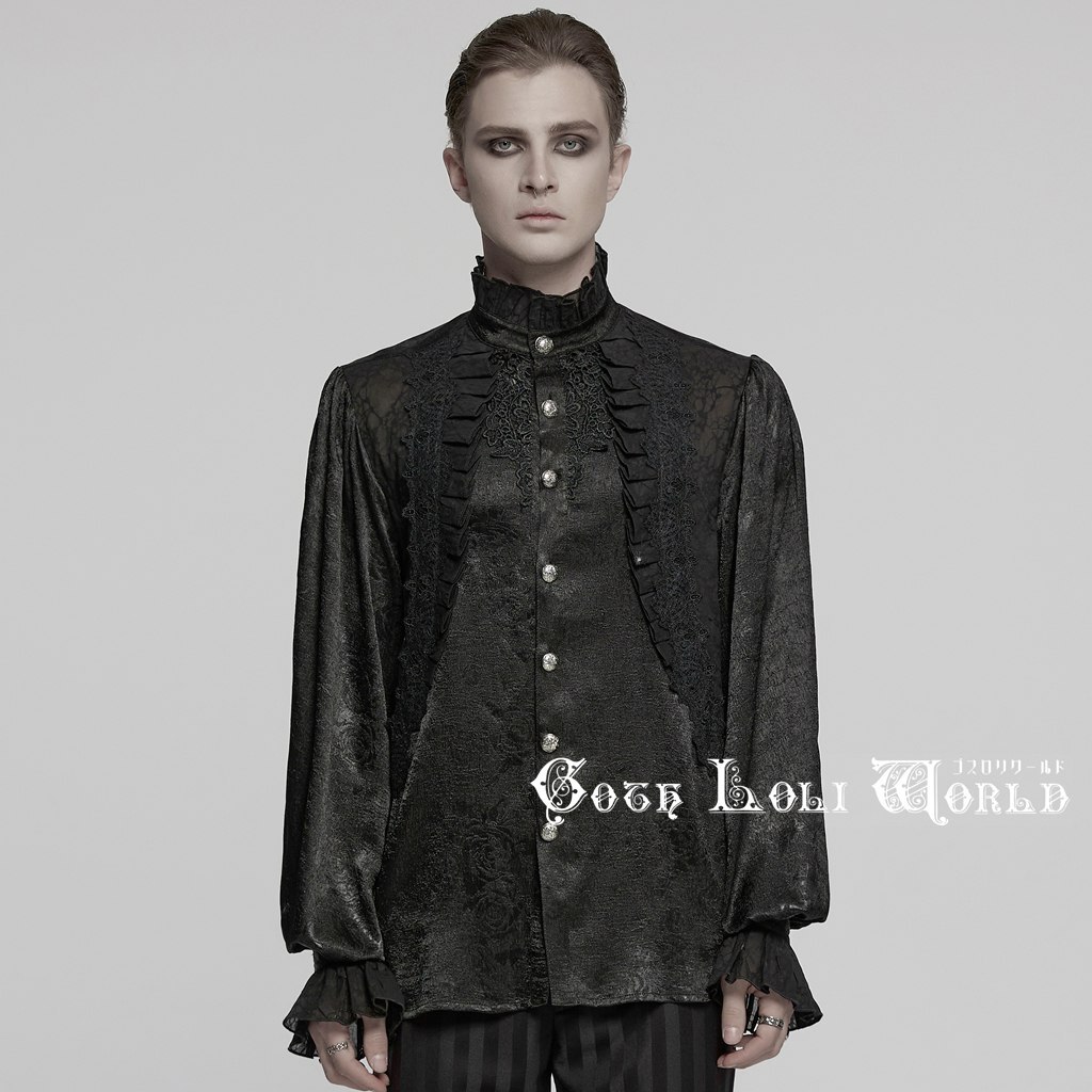 即納 WY-1764CCM-BK-M ゴシックファション ゴージャスフリル ブラウス 黒色 紳士 ジェントルマン 貴族 男爵 スチームパンク