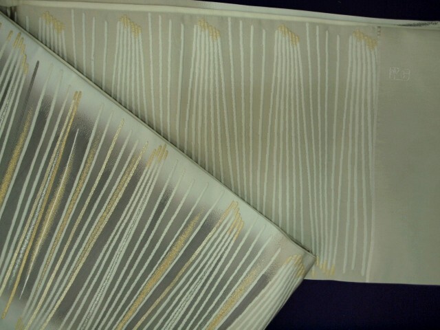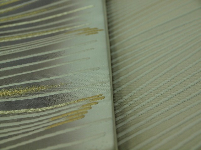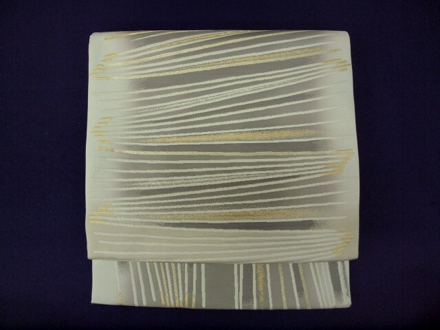 帯の名門 加納幸謹製の締めやすく上品な袋帯です。今までにないようなモダンでおしゃれ・素敵な袋帯です。●ベージュ色地にグレー系の上にベージュや金など斜め横縞柄です。すっきりしたデザイン性あふれたおしゃれな袋帯です。*未仕立てです。ただ今お仕立て代サービス!お仕立てまでには約2週間くらいかかります。西陣証紙番号NO:400 加納幸謹製●素材:絹80% 他ポリエステルなど 金属糸使用☆実物とは接写の加減で色が多少異なる場合がございますのご了承の上落札して下さい☆ヤフオークション 実店舗にも同時出品していますのでまれに時間差で商品が売り切れてしまうこともあります。その時はご連絡させていただきますのでどうぞご了承のほどお願いします。*実店舗がございますのでご覧になりたい方は御連絡お願いします。★お電話でもご注文承ります。03-3663-7071*土曜・日曜・祝日はお休みの為、ご連絡、発送はできません。