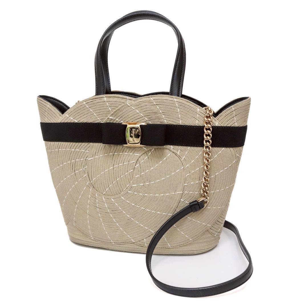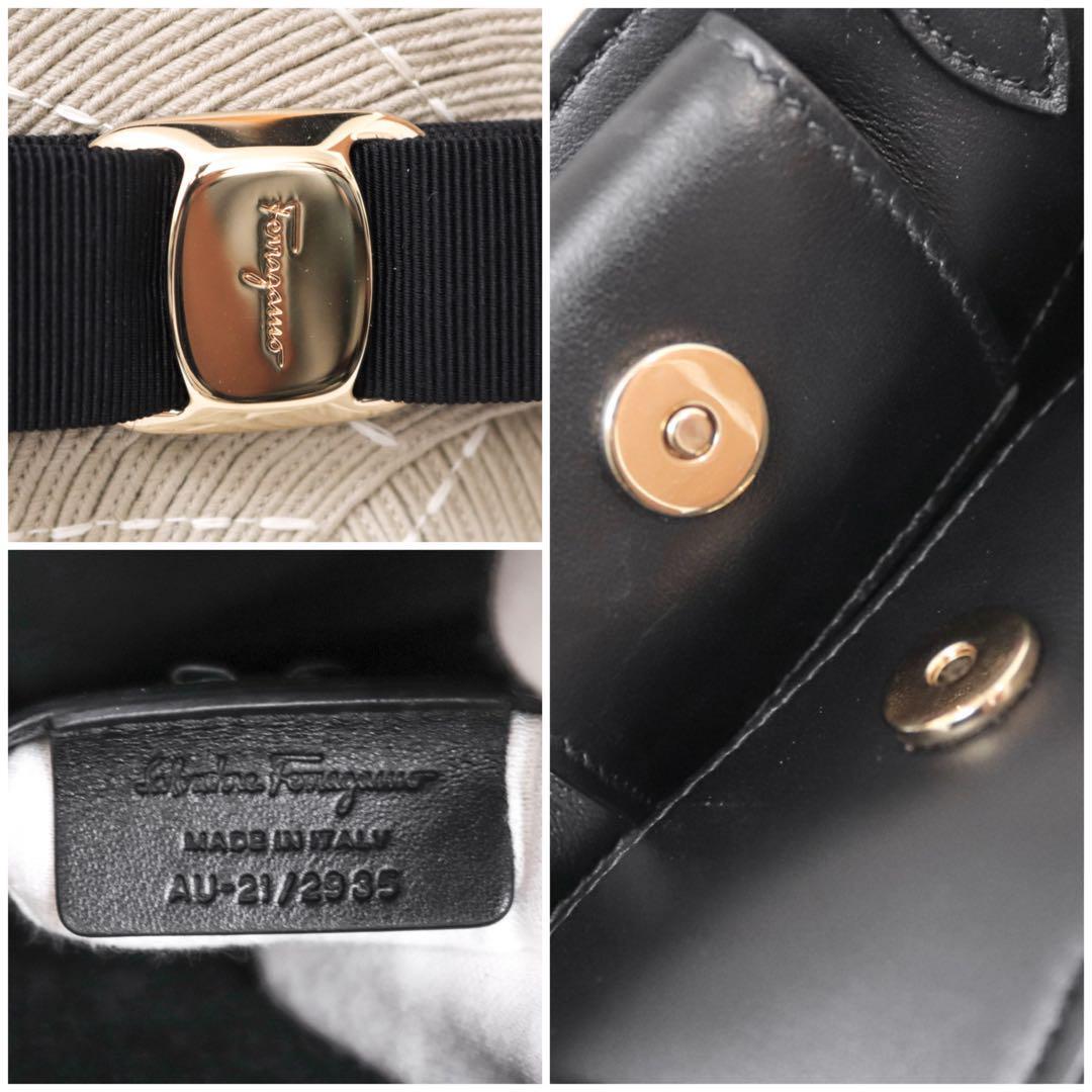 フェラガモ ヴァラリボン グログラン ナチュラーレ ベージュ&ブラック 212935 NATURALE NERO バッグ AU-21 2935