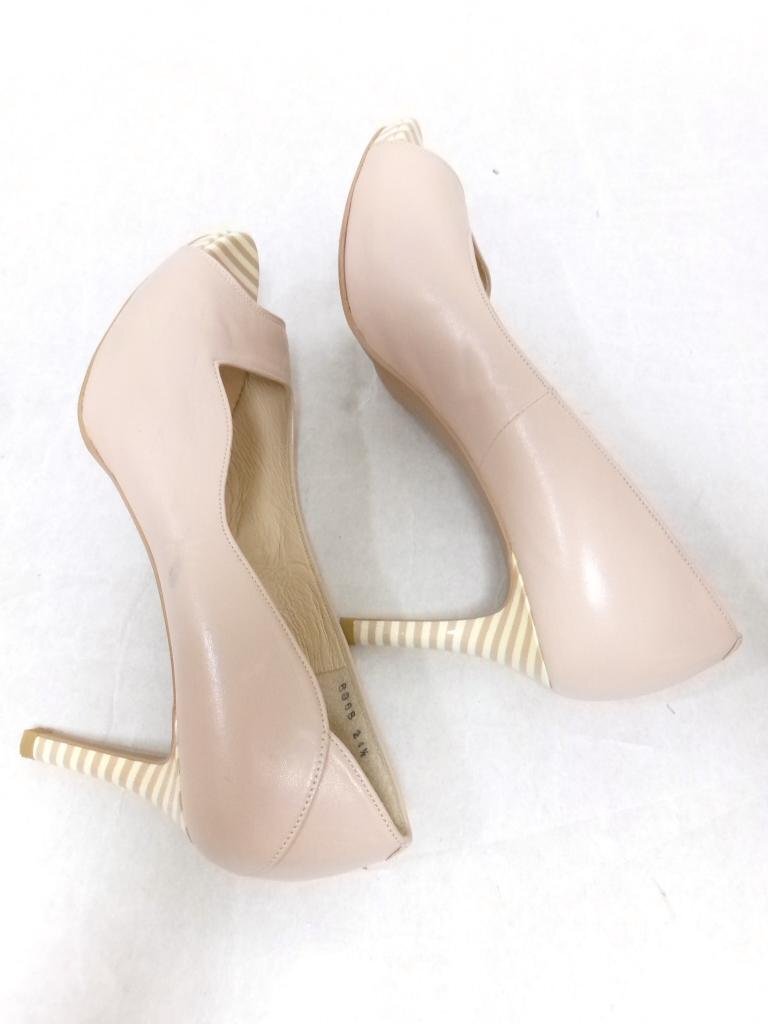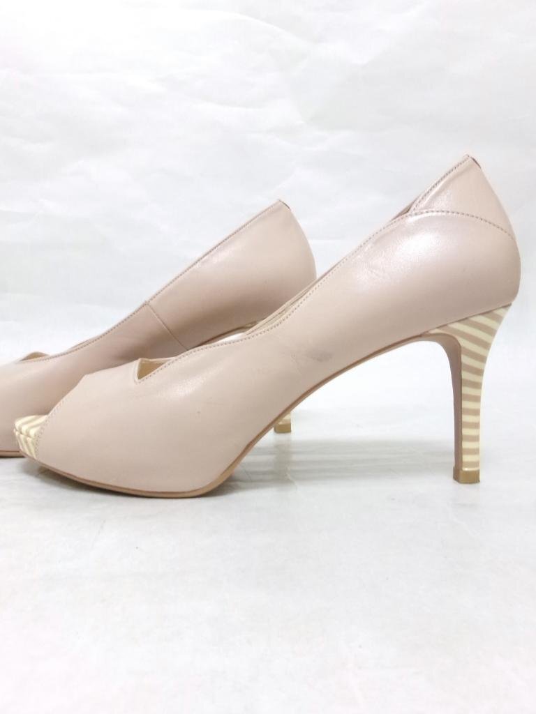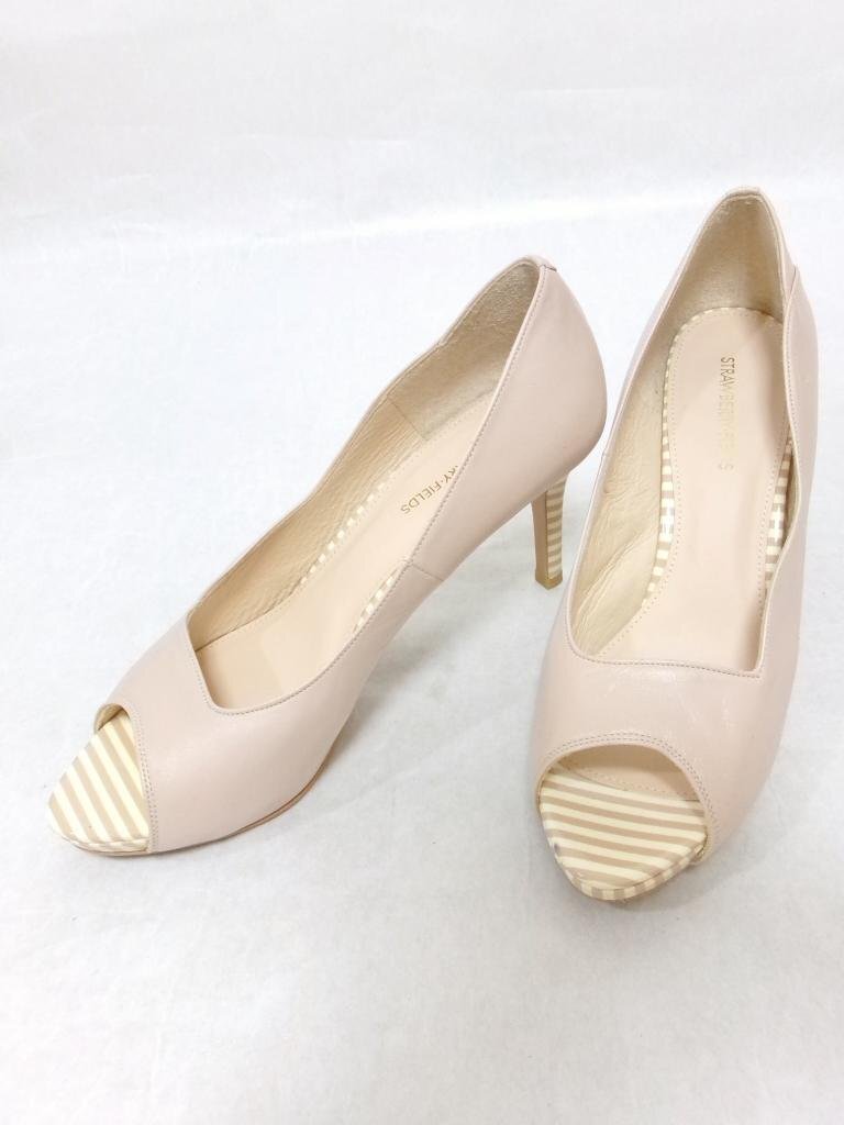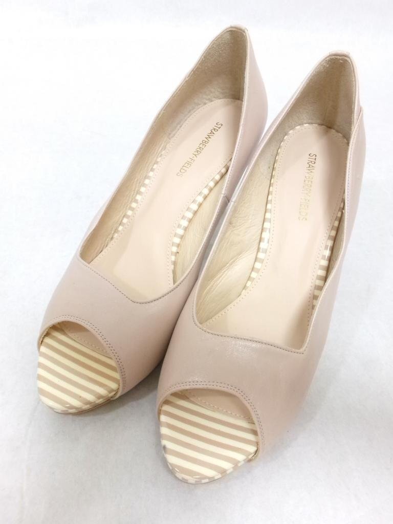 【送料込】STRAWBERRY-FIELDS ストロベリーフィールズ くつ ピンクベージュパンプス オープントゥ ボーダーヒール 24.5cm ヒール8cm/971682