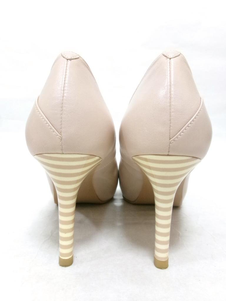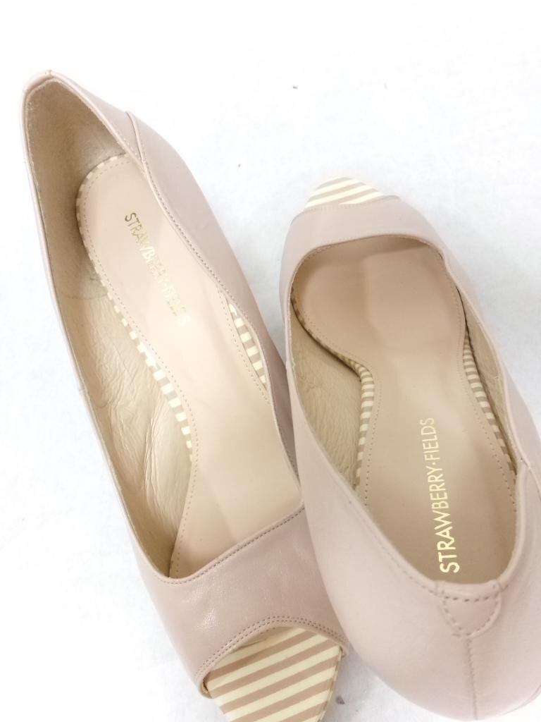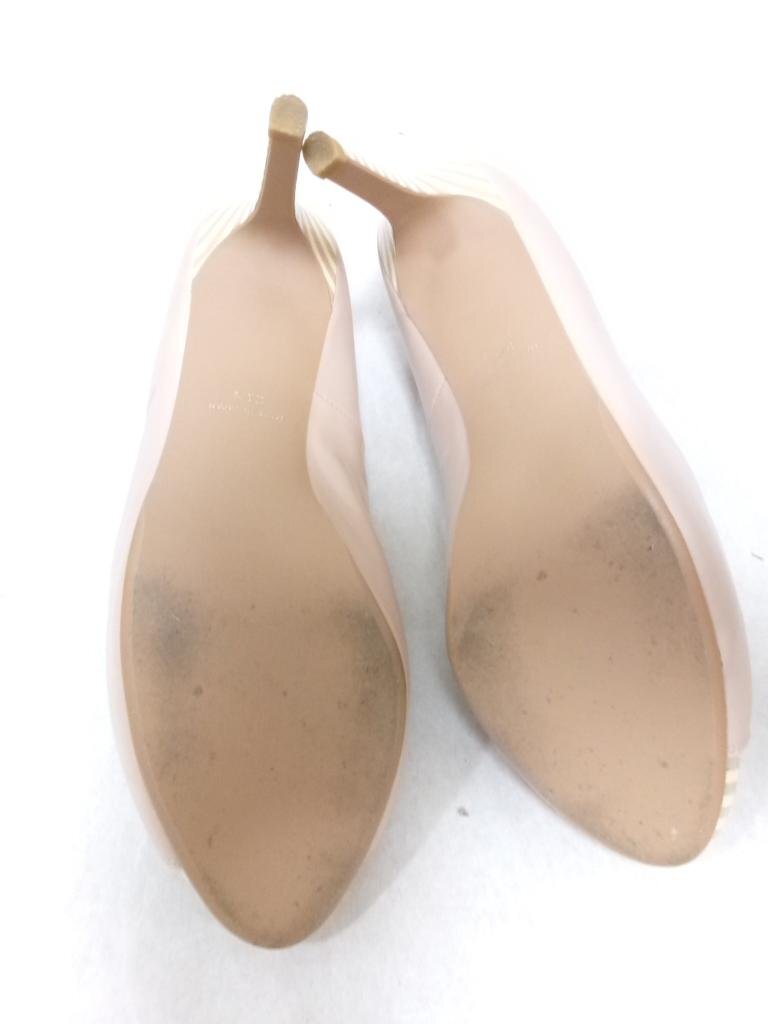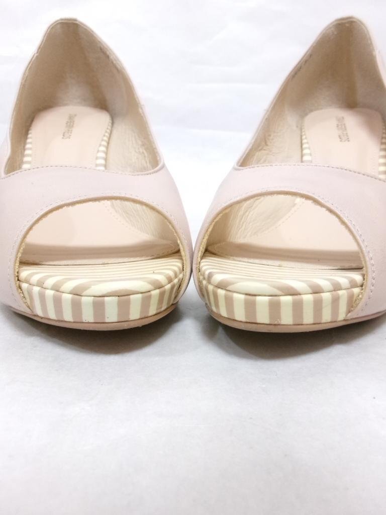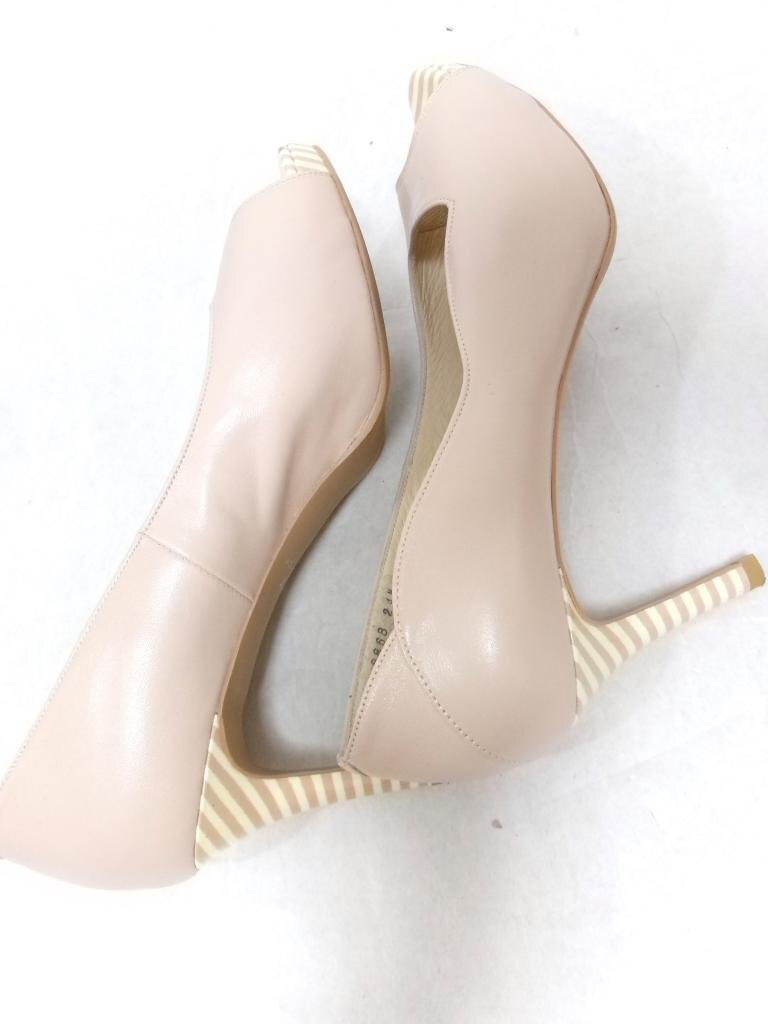 【送料込】STRAWBERRY-FIELDS ストロベリーフィールズ くつ ピンクベージュパンプス オープントゥ ボーダーヒール 24.5cm ヒール8cm/971682