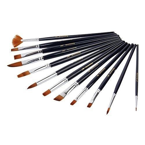 【送料無料】極細から太筆まで 画筆 12本 基本セット 水彩画 アクリル画 油絵 木製軸 ナイロン毛 子供 初心者 ベテラン プレゼント