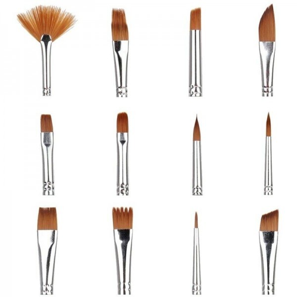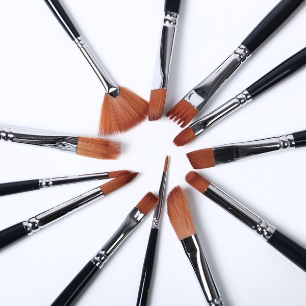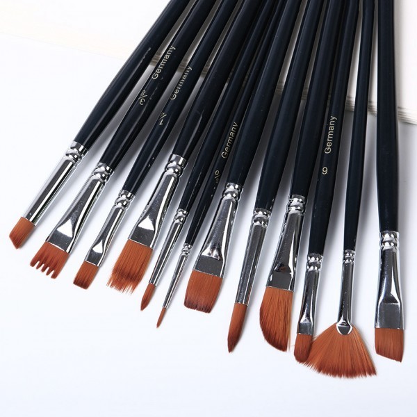 画筆 12本 基本セット 水彩画 アクリル画 油絵 木製軸 ナイロン毛 子供 初心者 プレゼント CH00845
