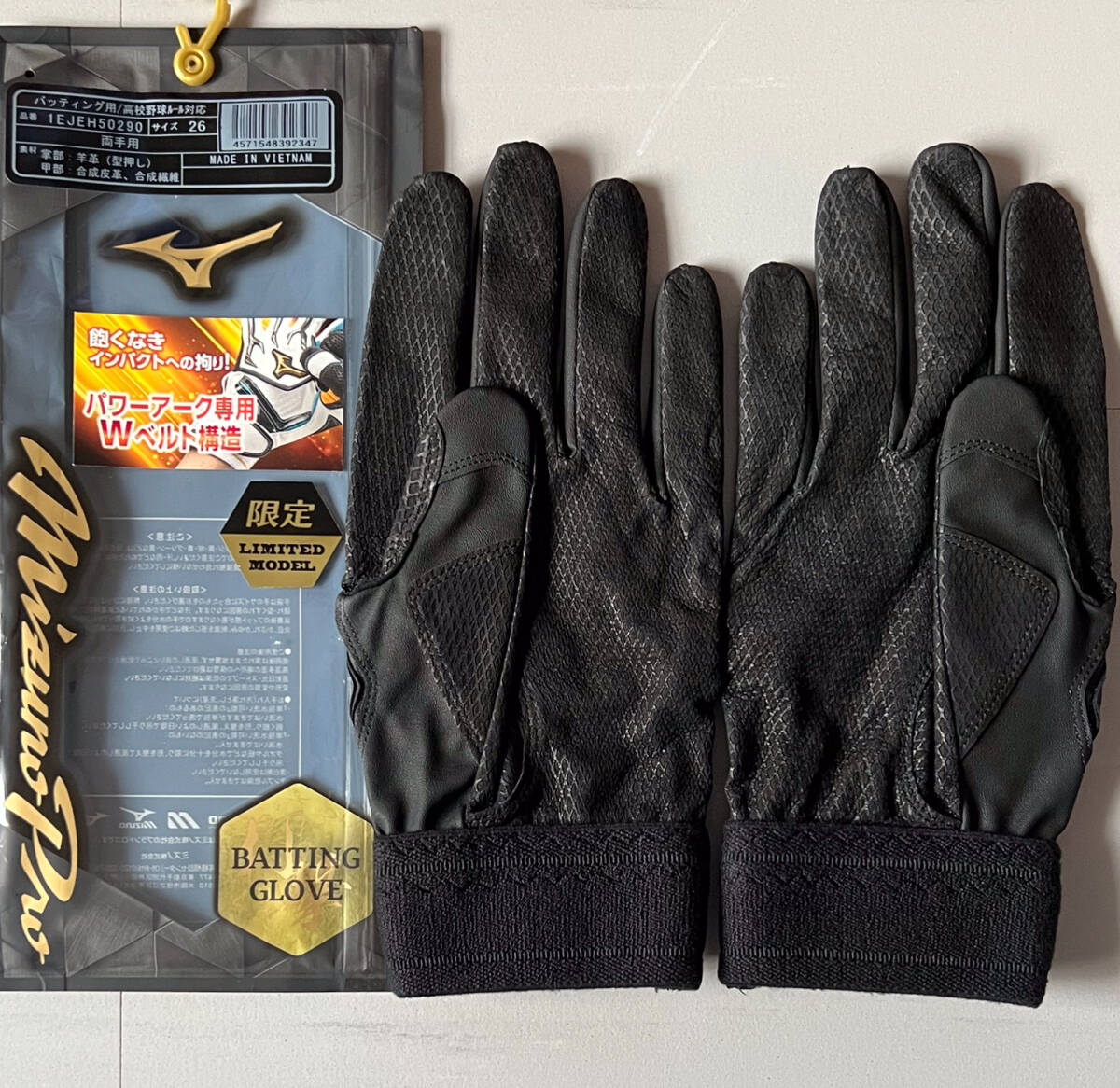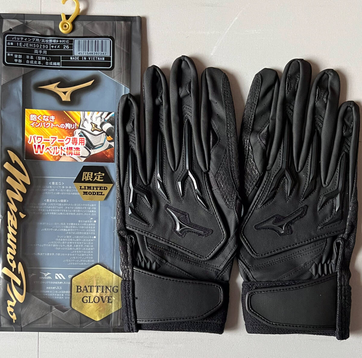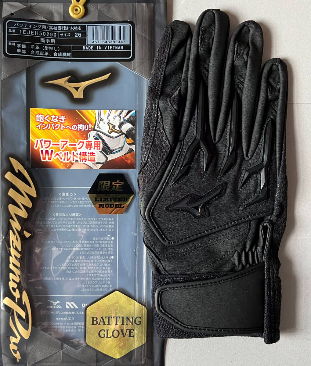 MIZUNO PRO■ミズノ プロ〔サイズ24〕バッティンググローブ 両手用 パワーアークライン 高機能限定モデル 黒 ブラック 国内正規品