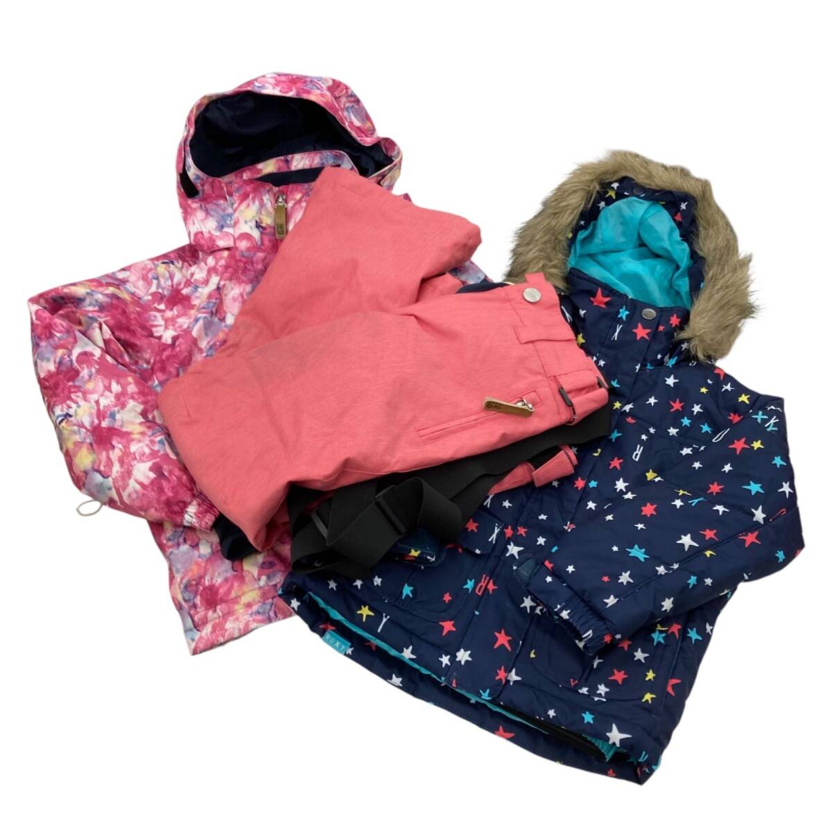 186001 現状品 arg ROXY ウィンタースポーツウェア スノーウェア キッズ ピンク ネイビー 130cm 3点 まとめ売り ポリエステル キッズ