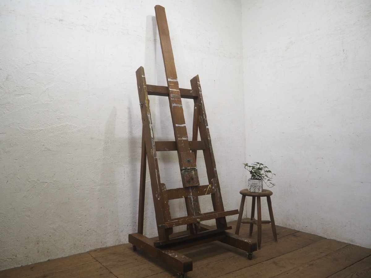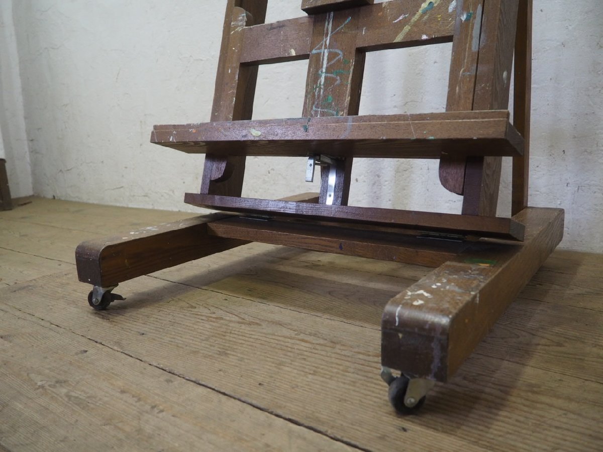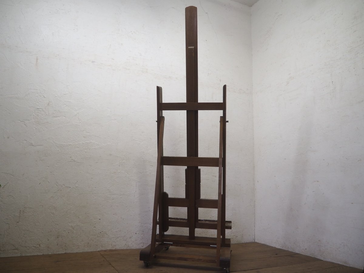 タ荷P0528◆H202~274Hcm◆ビンテージ◆特大◆キャスター付きの大きい木製イーゼル◆大型 画材 絵画 油絵 メニューボード レトロV(ヤF)松